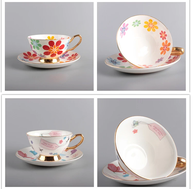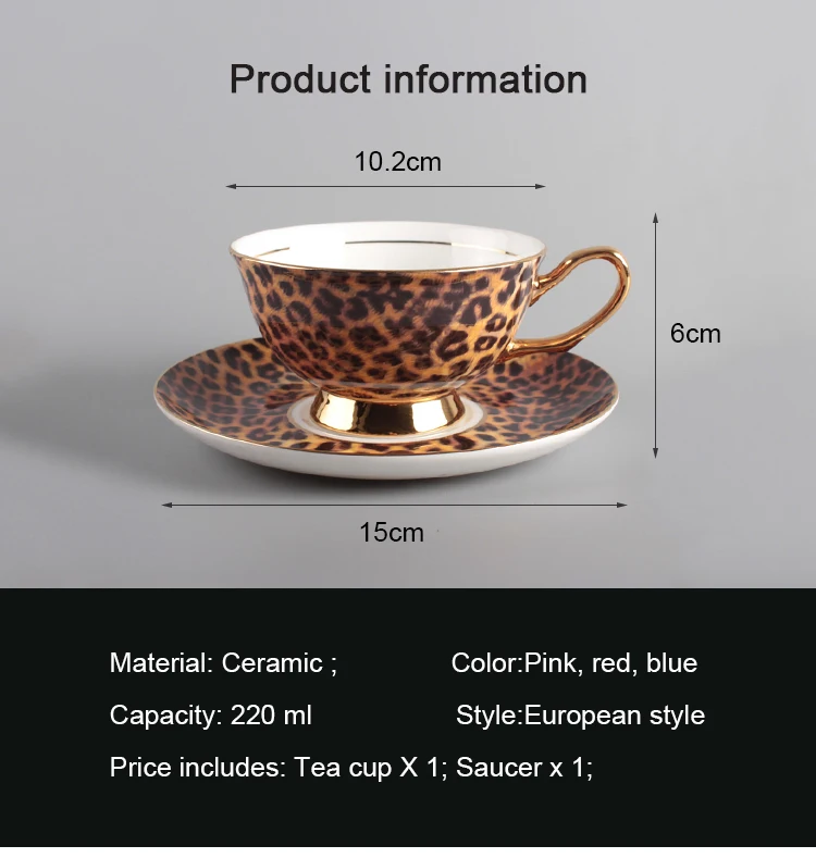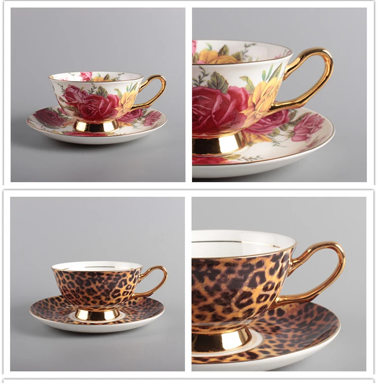 Creative Leopard Print Coffee Cup & Saucer Set Quality Hand-painted Phnom Penh Tea cup Ceramic Drinkware Pastoral Flowers Cups