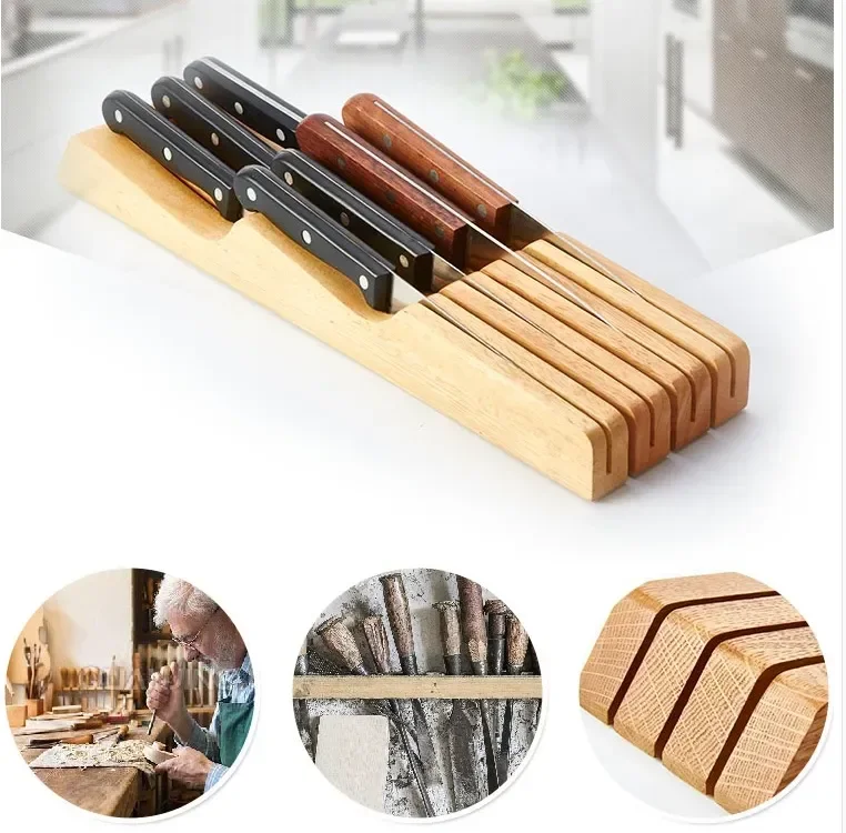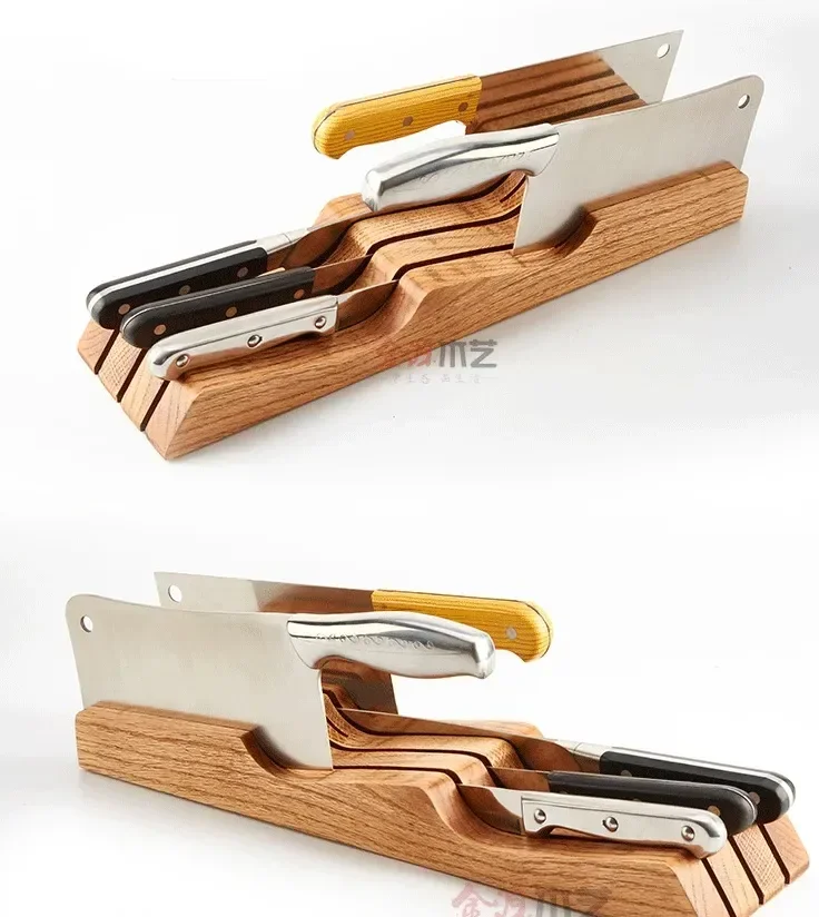 Creative simple put drawer knife holder horizontal wooden knife seat restaurant European tool holder kitchen rack free mail