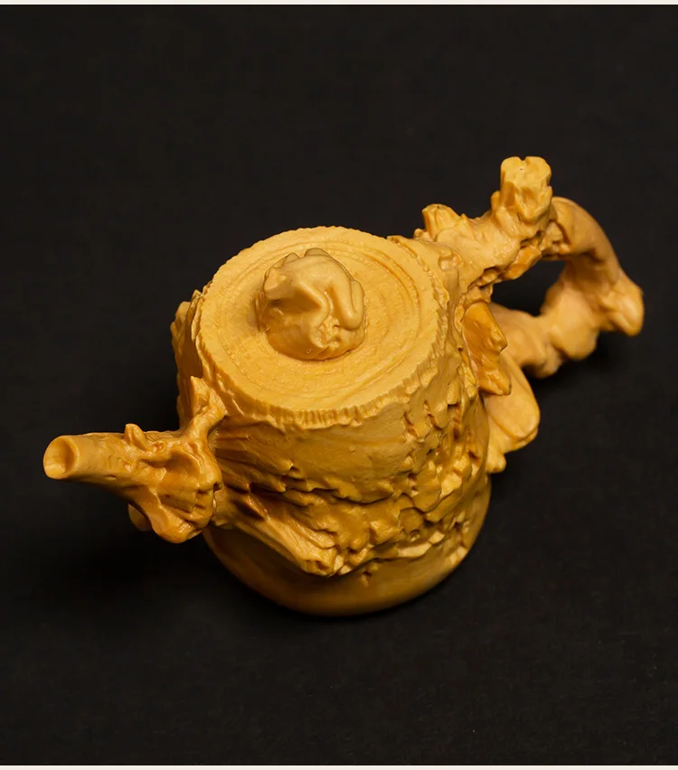 Creative Wooden Pet Carving Teapot Living Room Ornaments Lobe Boxwood Set Carving Handpiece