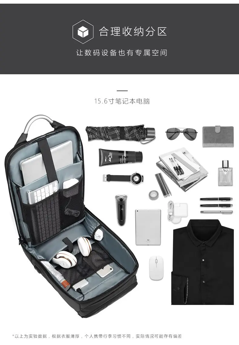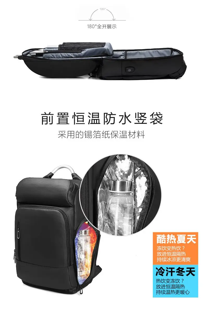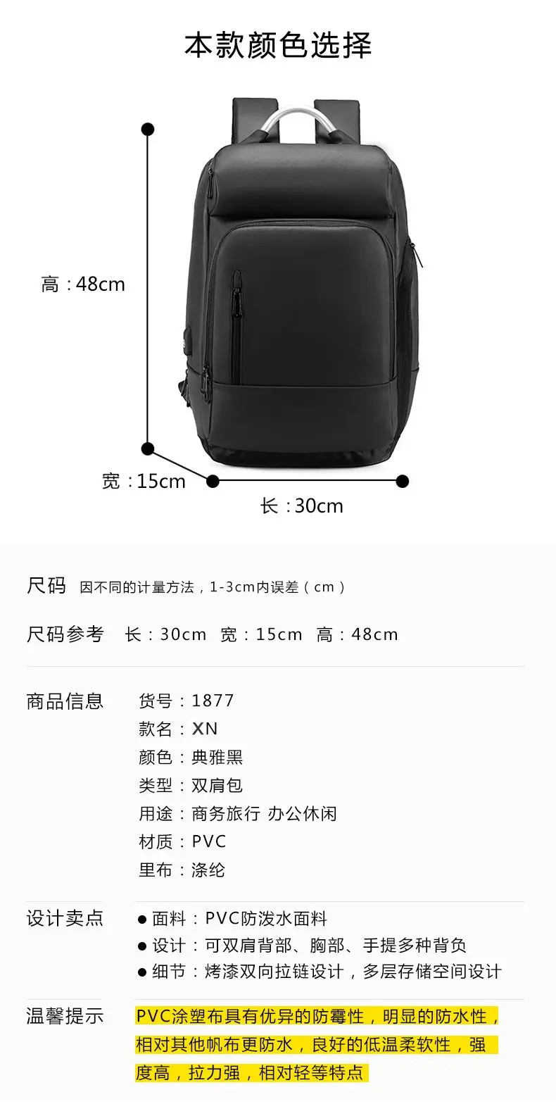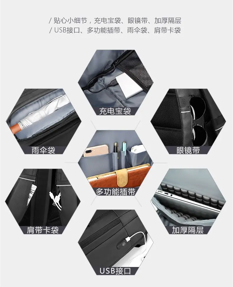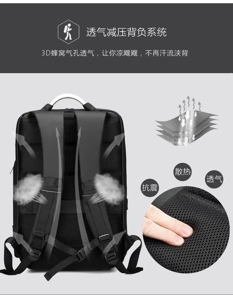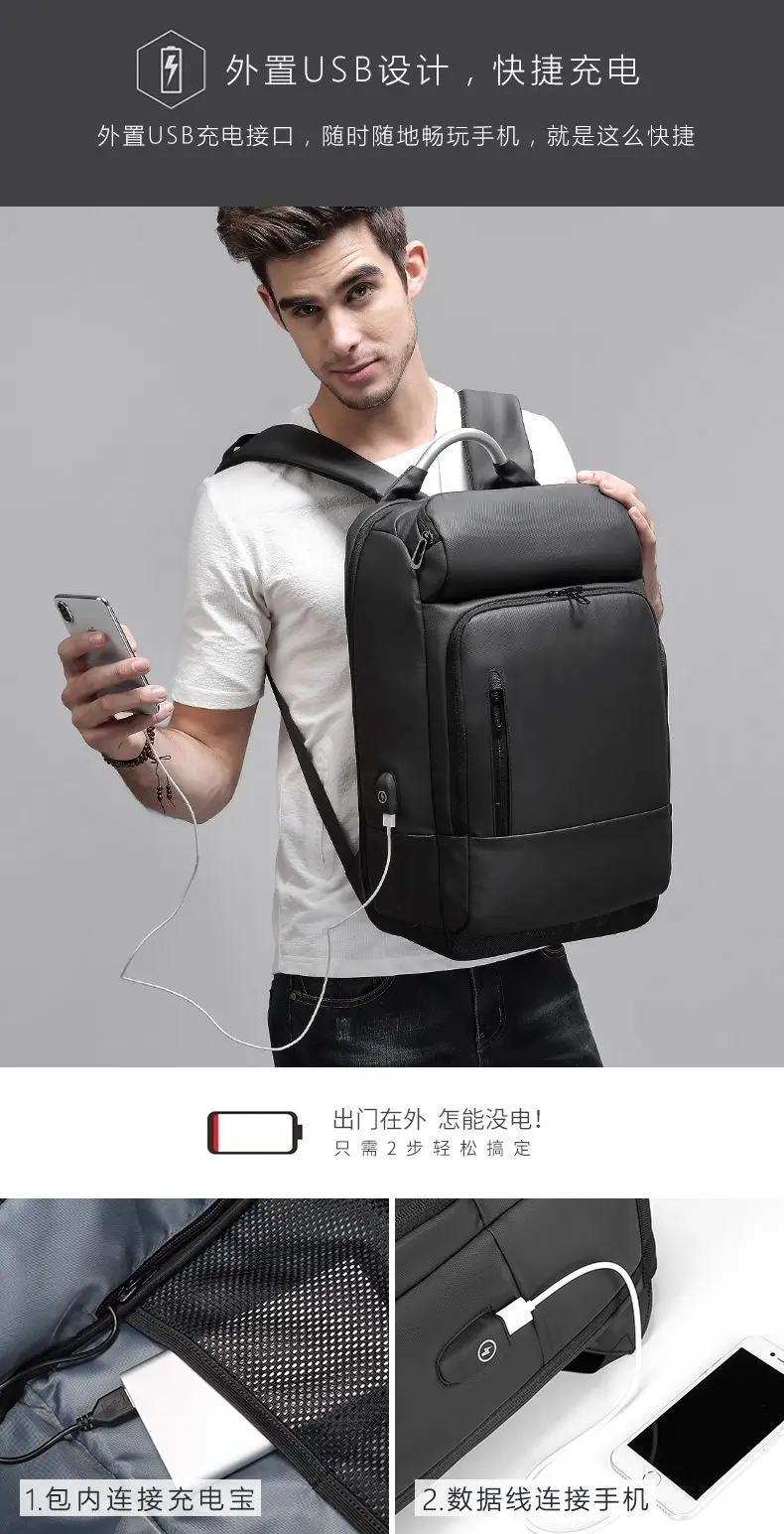 EURCOOL 15.6 Laptop Backpack Black Business Male Mochila USB Charging Functional Rucksack Waterproof Backpack
