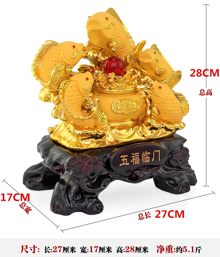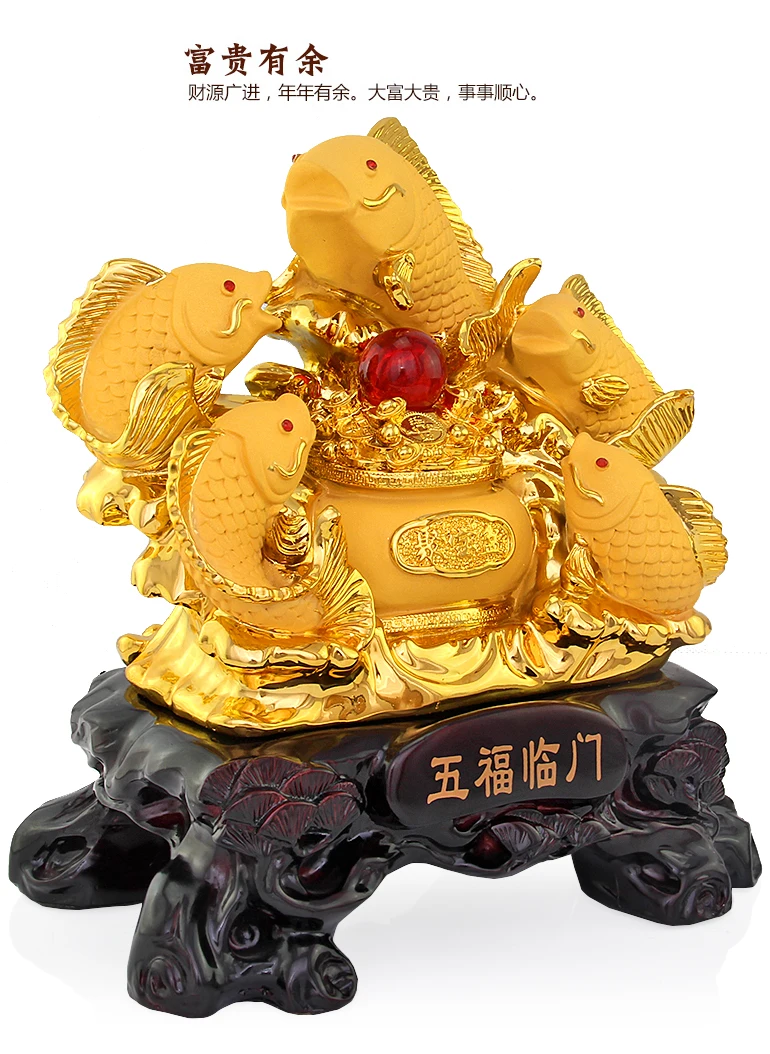 Feng Shui Fish resin cornucopia handicraft Five carp home decoration accessories fish statue hotel decoration maison home decor