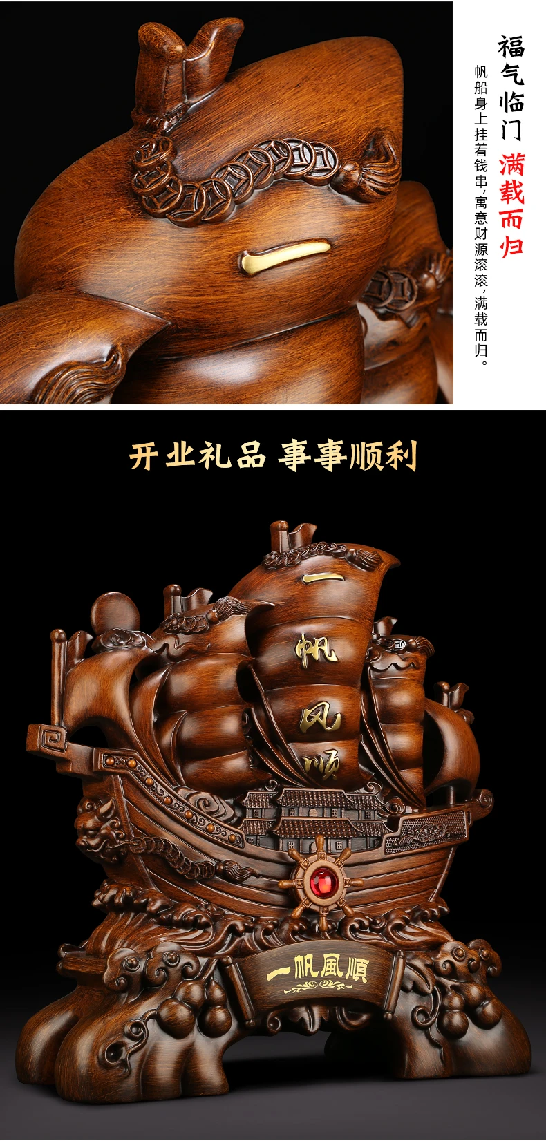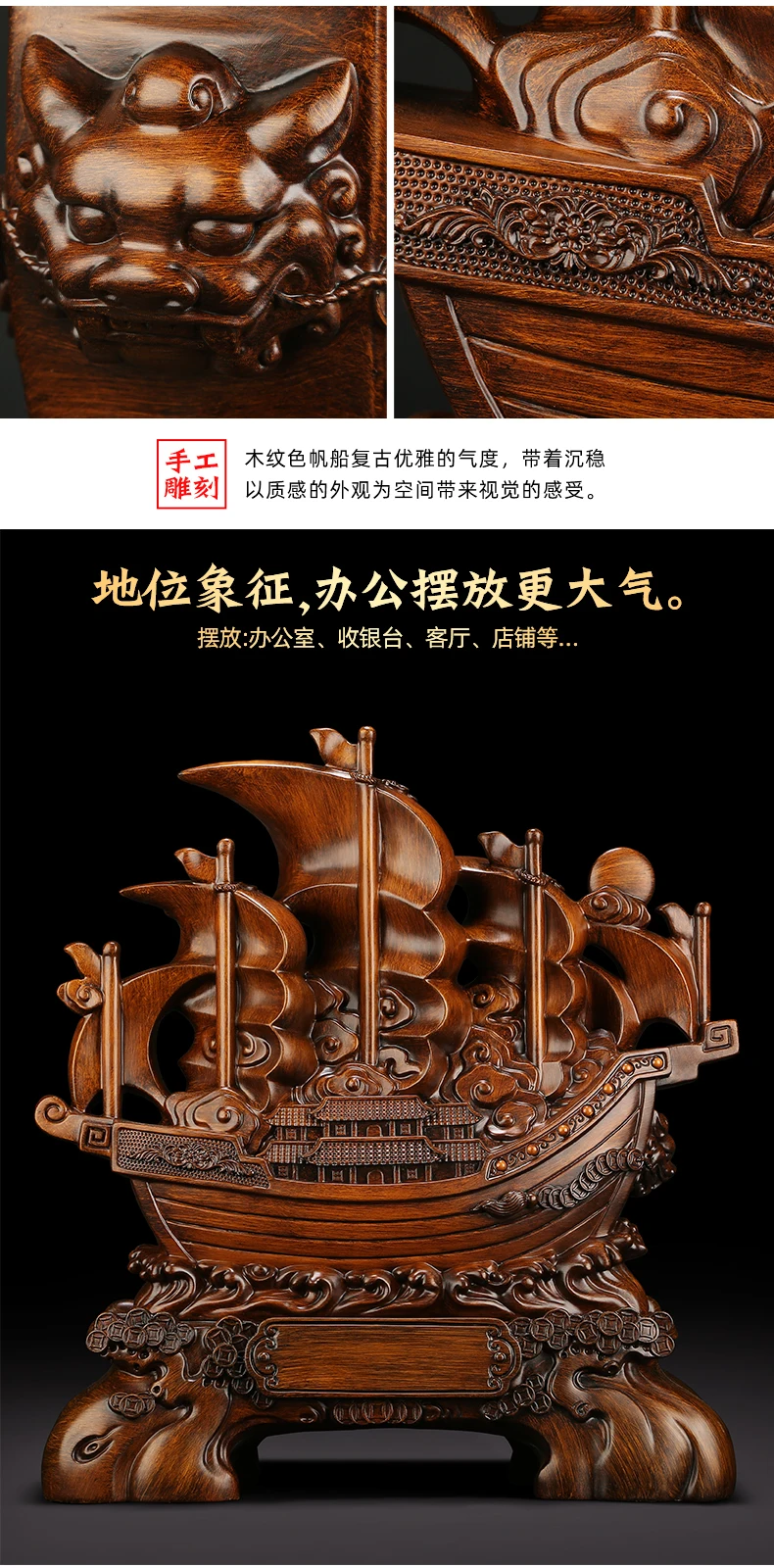 Product introduction: A ship is a symbol of peace, which in China means all is well and good . The dragon in the Chinese mind, a representative is not only the totem of the Chinese nation, and it also represent auspicious, noble and beautiful, in China are often palace or temple used to carve picture ChengLongZhu or three aspects to show to turn good omen. The dragon is one of the four spirit and symbol of the people of all ethnic groups in long-term influence each other, fusion and unity.Ruyi means good luck.