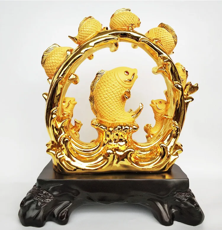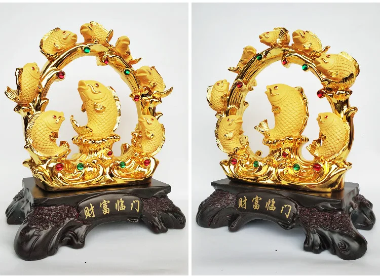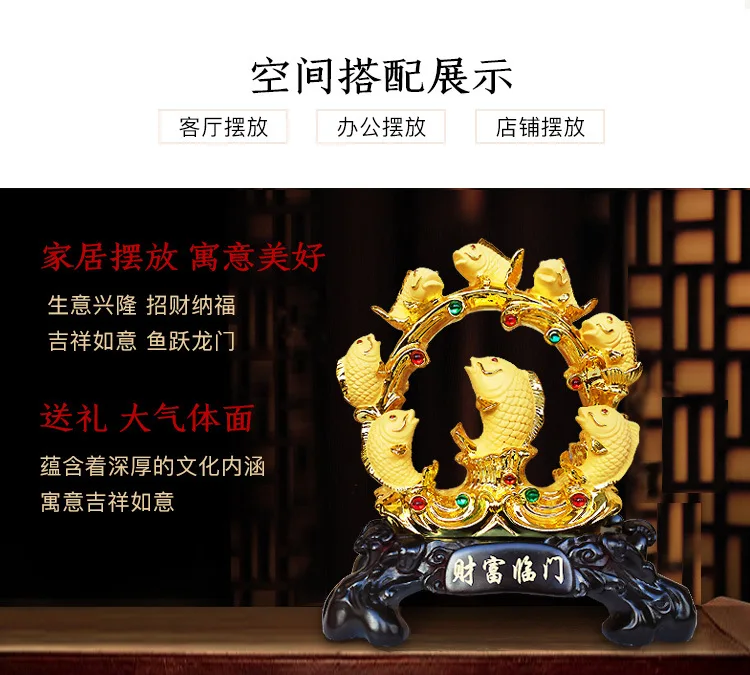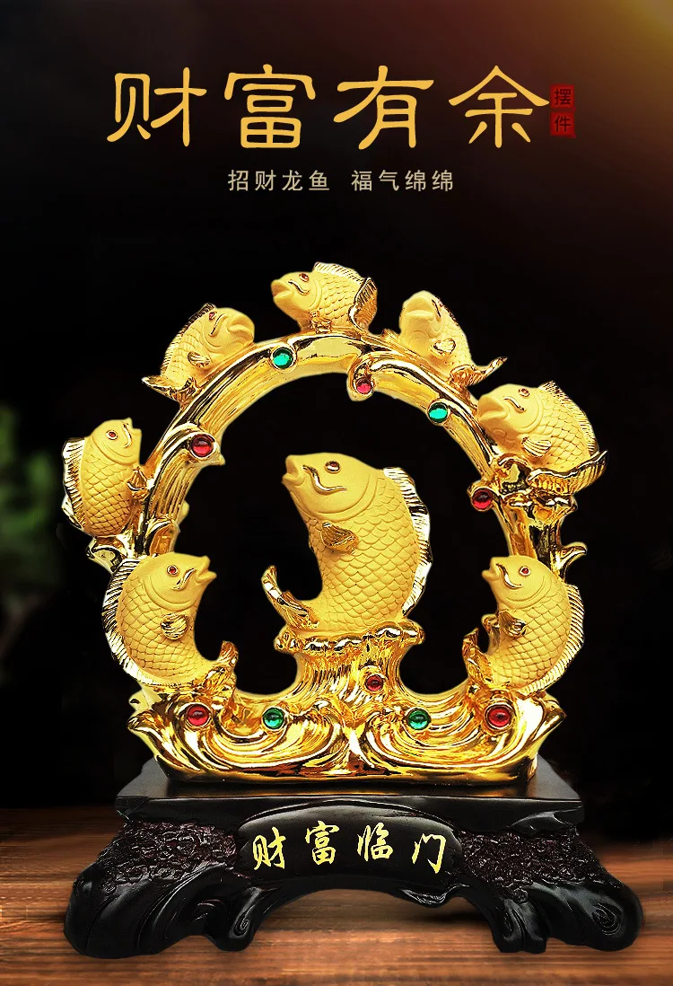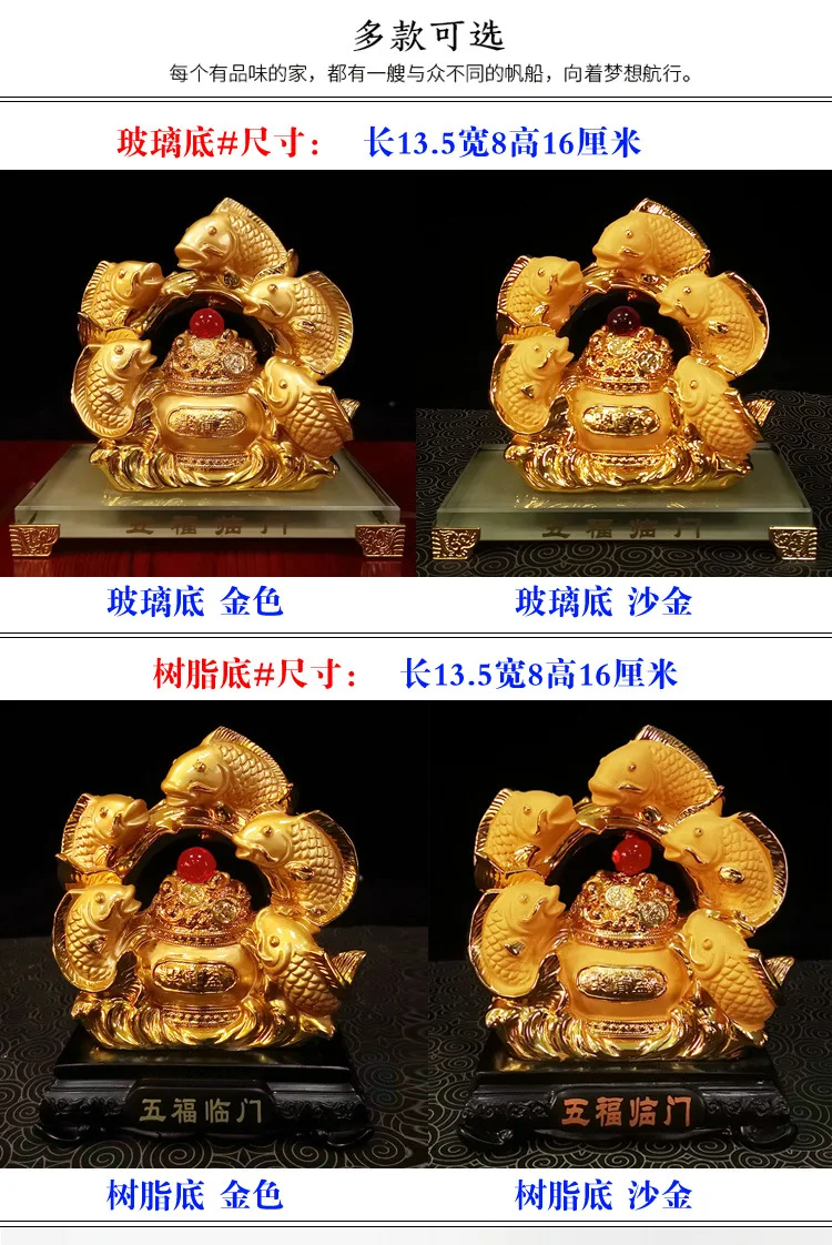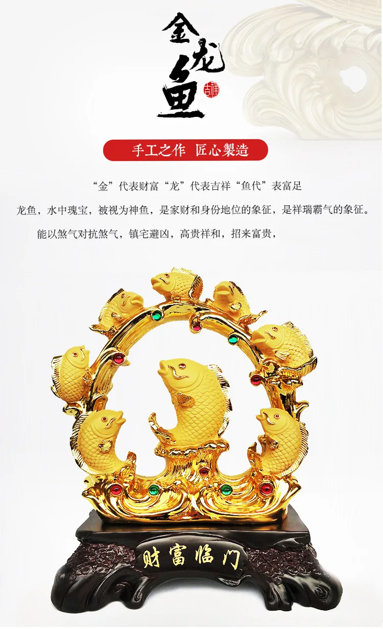 Fengshui Resin Gold Fortune Dragon Fish Wufu Linmen Home Living Room Decoration Opening Gift Wholesale Home Decoration Statue