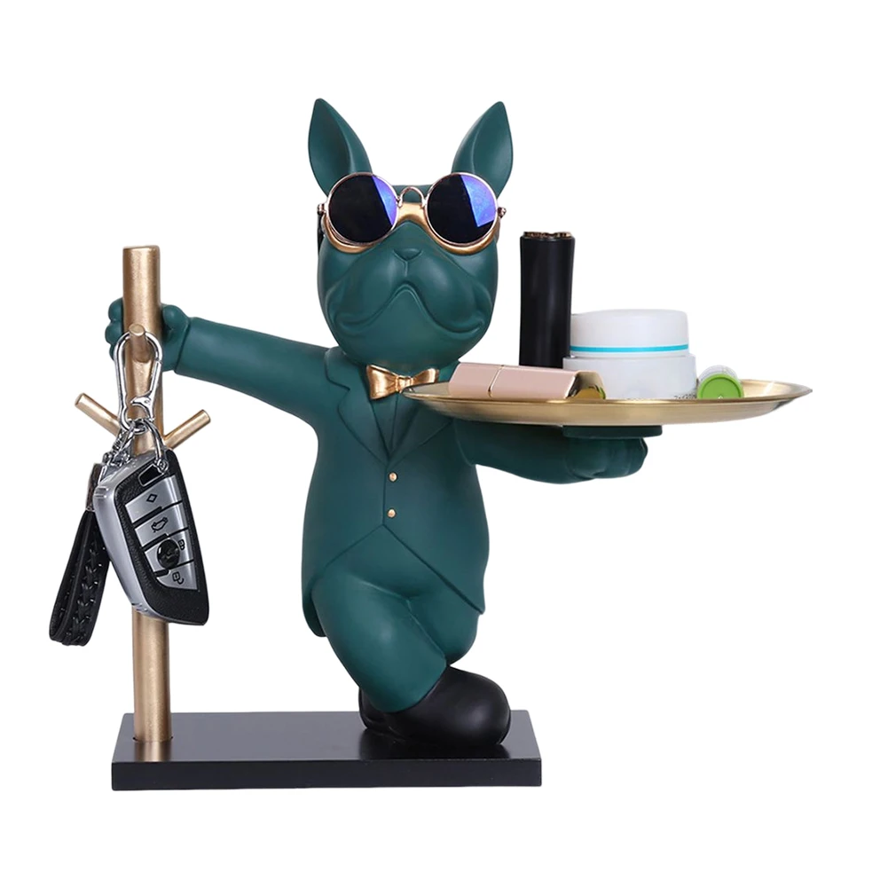 French Bulldog Sculpture Dog Statue Decorative Figurine Storage Metal Tray Coin Piggy Bank Entrance Key Snack Holder