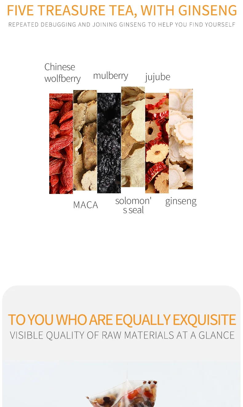 Ingredients: jujube goji berry mulberry, Huangjing maca powder ginseng