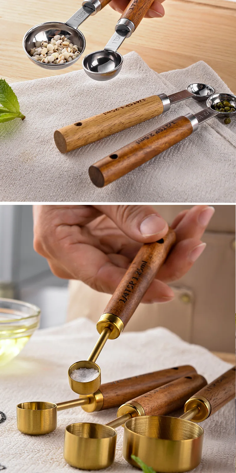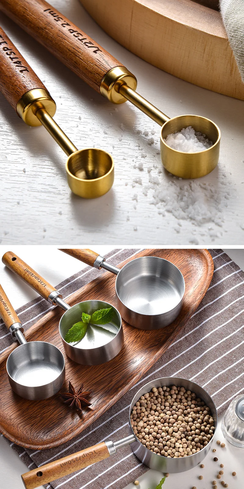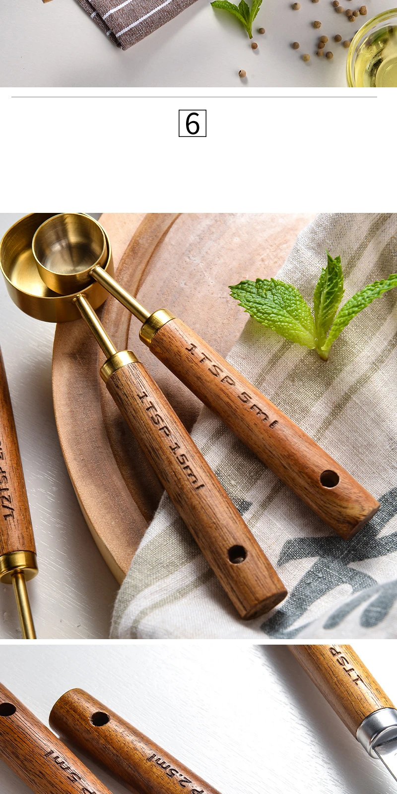 Gold Walnut Wooden Measuring Coffee Beans Powder Scoop Mini Tea Spoon Milk Powder Ice Cream Sugar Salt Spice Spoon Kitchen