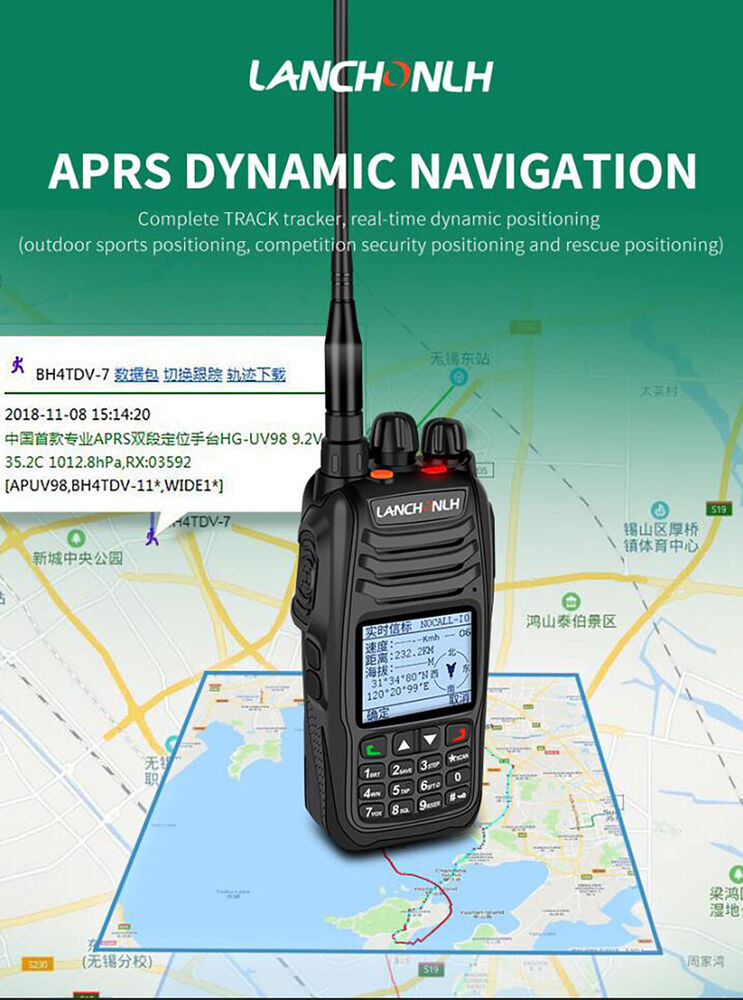 3. UV98 professional APRS dual-segment positioning handbench, using standard APRS digital coding, can directly work independently without third-party network and third-party software support, directly send and receive positioning data through radio U/V signals, widely used in outdoor sports, events Security, rescue and other occasions.
