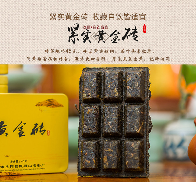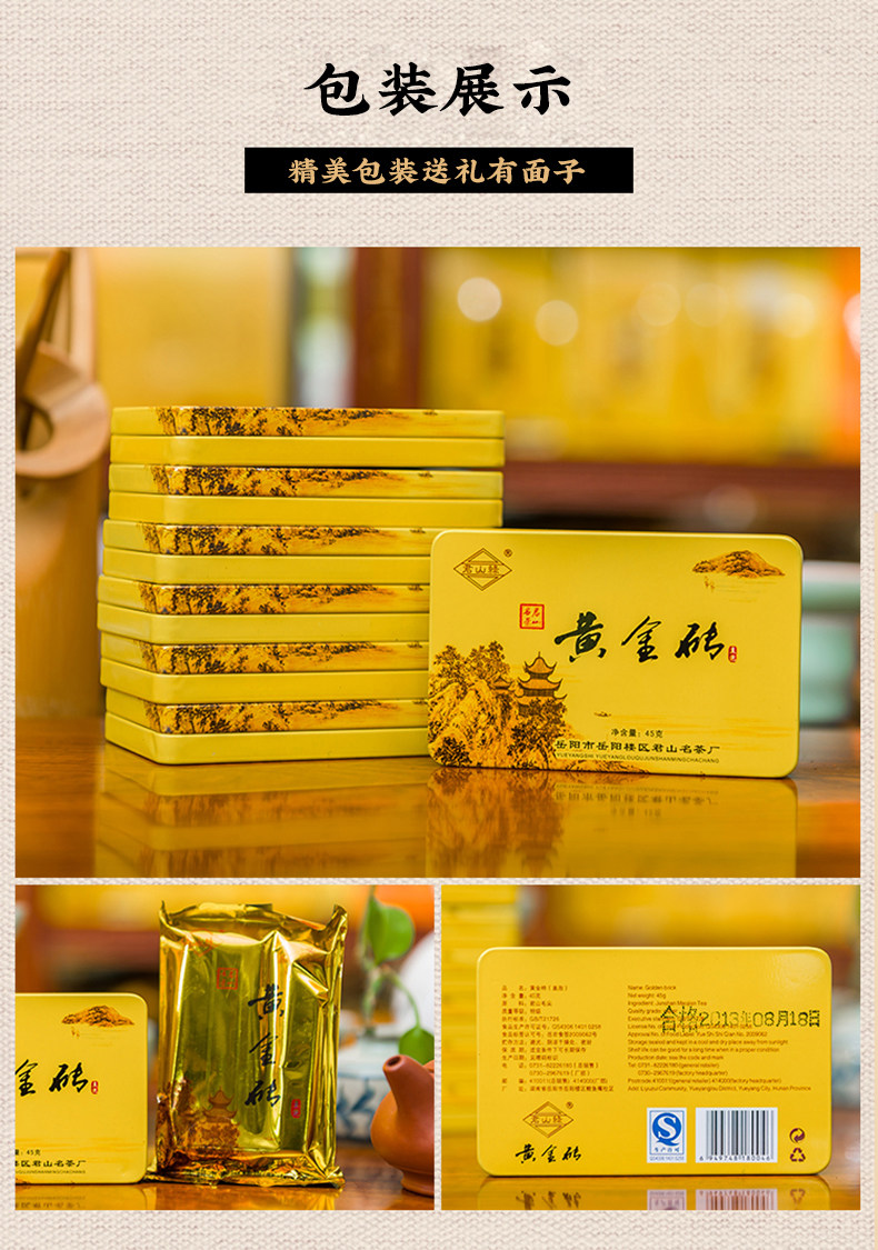 Jun Shan Huang Cha China Yellow Tea Mini Gold Brick Pressed Maojian 45g Box