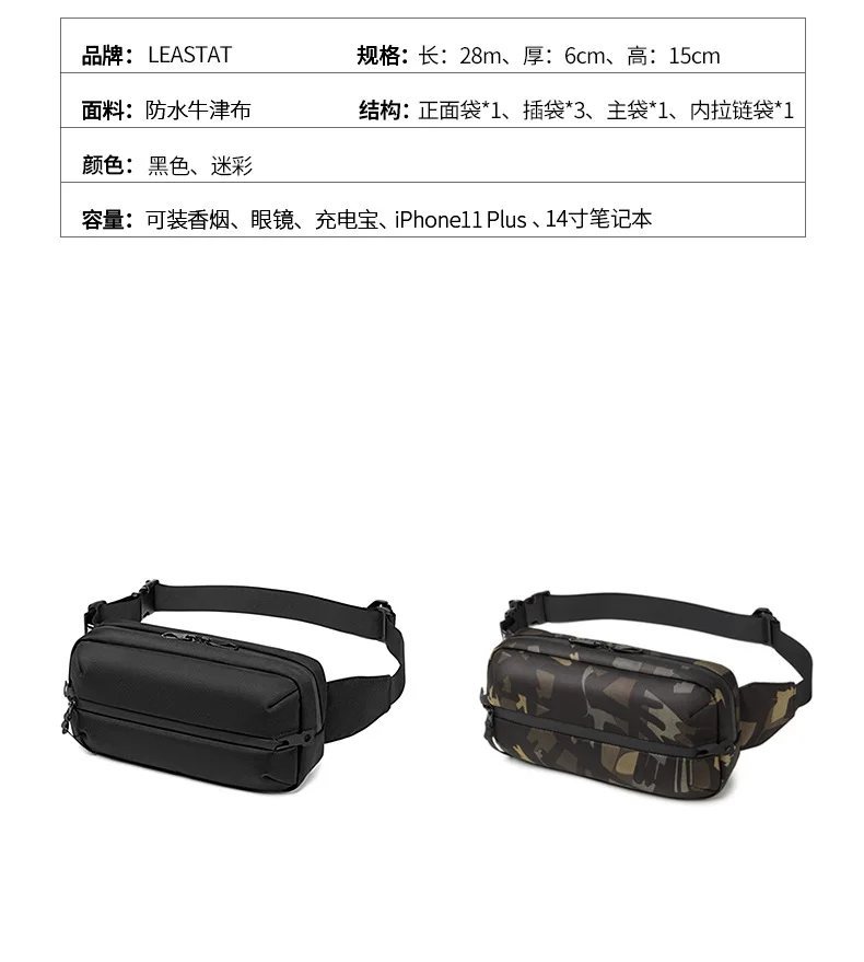 LEASTAT Men's Waterproof Waist Bag, Fanny Pack, Outdoor Sports Chest Bag, Male Casual Travel Crossbody Belt Bags, High Quality