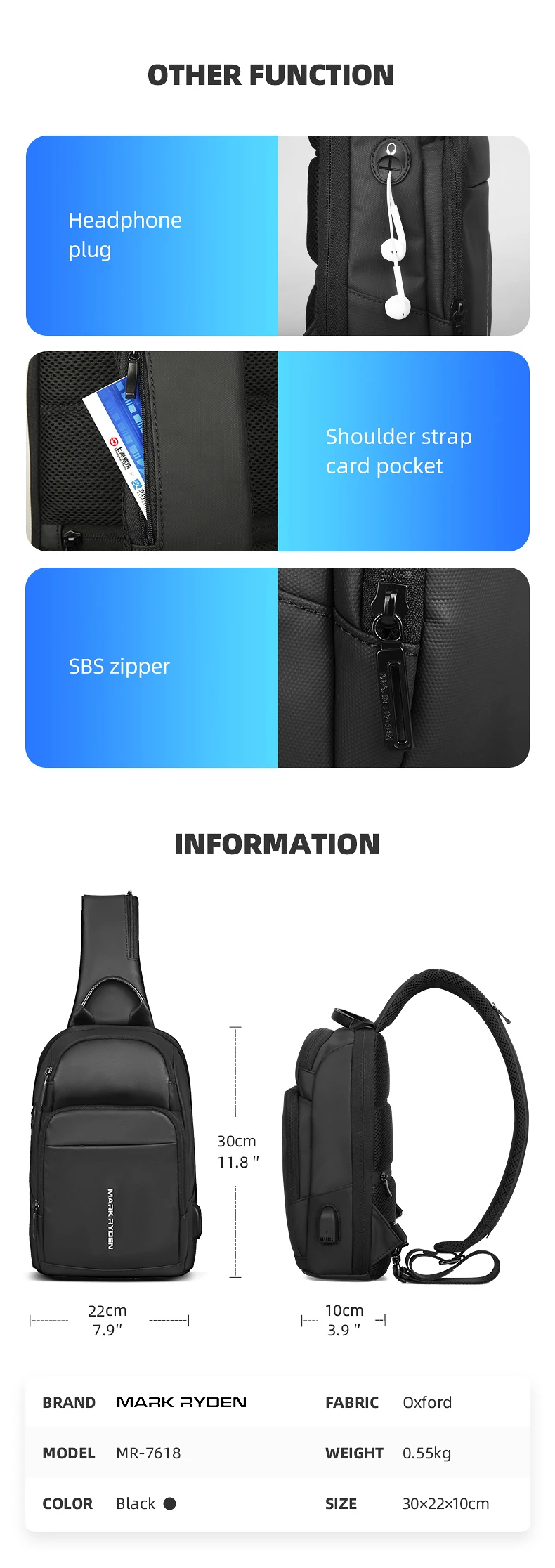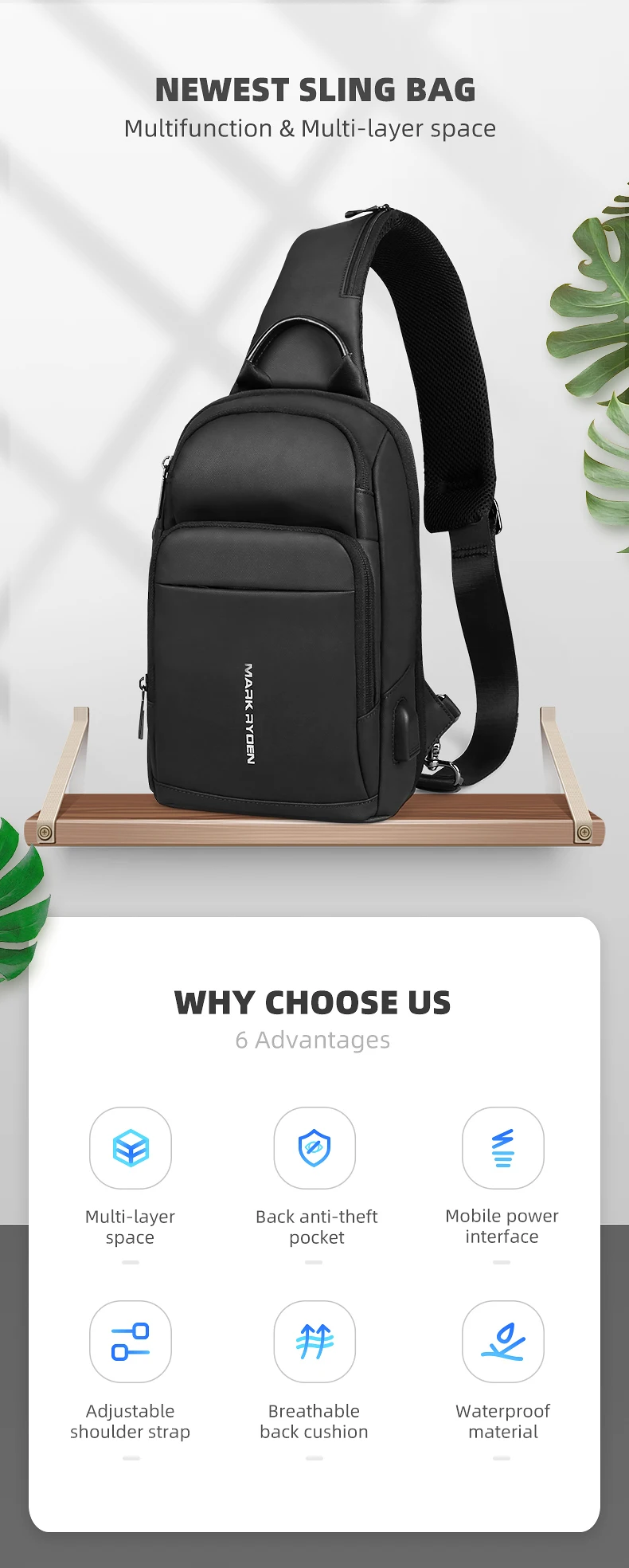Mark Ryden New Anti-thief Crossbody Bag Waterproof Men Sling Bag Fit 9.7 inch Ipad Fashion Shoulder Bag Messenger Bags