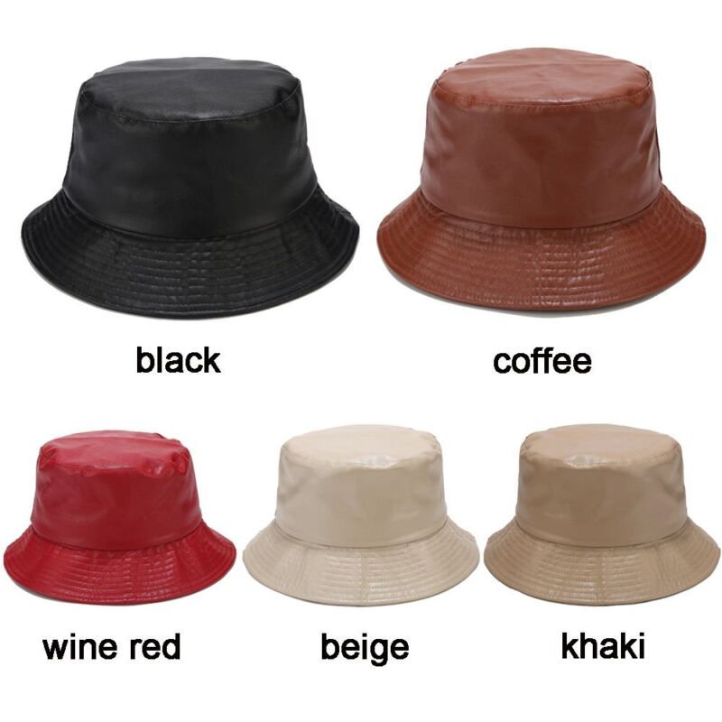 Men Outdoor Waterproof Hiking PU Bucket Hat Fisherman Cap Leather Sun Caps