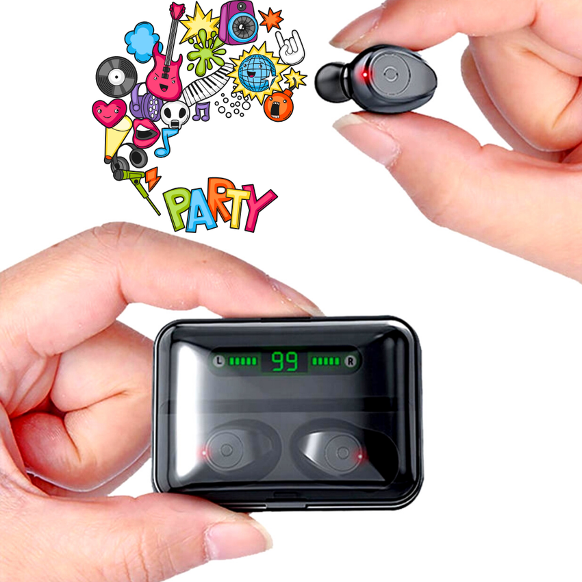 1.LED power display and 2000mAh battery Bluetooth headset with 2000mAh large capacity charging box, talking time up to 6 hours. Smart LED power display, you can predict the power of the headset.