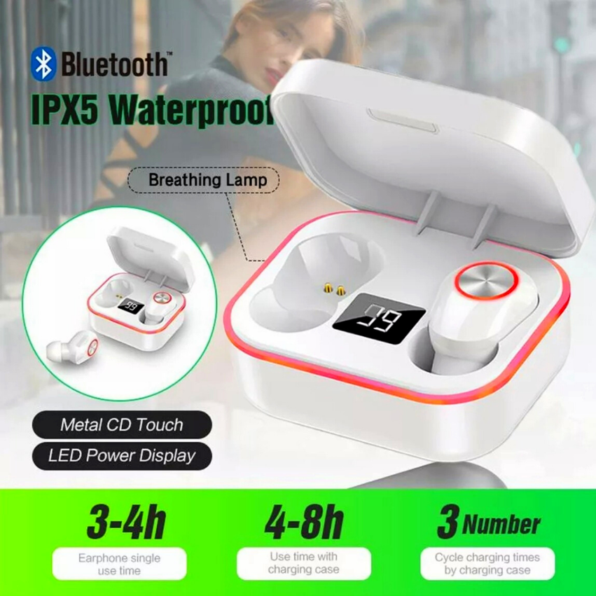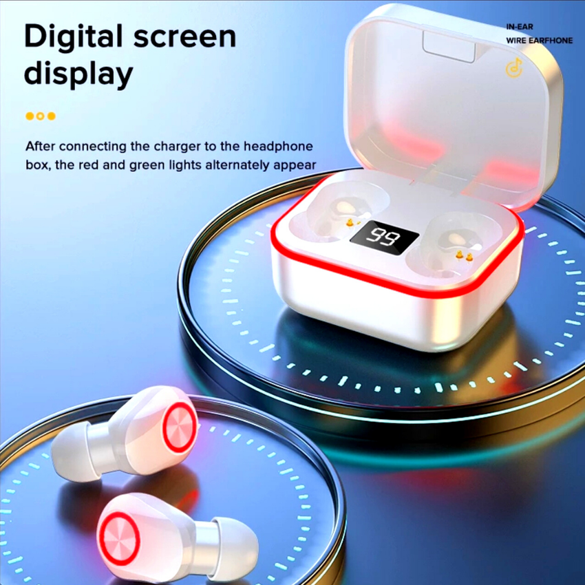 The M8 True Wireless Earbuds are designed with premium audio quality, ease of use, and longevity. Reinforced Graphene Drivers provide crisp and clear treble, rich vocal clarity, and ample bass throughout all genres of music & ebooks/podcasts. The Bluetooth chip prevents any audio delay and skipping while watching videos or shows and is universally compatible with any smartphone device that has Bluetooth enabled (Android or iOS). We've simplfied the pairing process and now they automatically pair with eachother once taken out of the charging case. The battery is extremely efficient and provides up to 3-4 hours of talk/listening depending on the volume, and up to 100 hours of standby time. The earbuds are truly wireless and have no cords or wires attatched so you're free to exercise and move about without any worry of them falling out. Listen to your favorite bands, strike up a conference call, or go for a walk without the a clunky headset over your head or wires that you have to untangle! Feature Highlights Reinforced Graphene Drivers for Crisp Treble, Clear Vocal Clarity, and Ample Bass The M8 earbuds are equipped with silicone tips that provide a seal against outside noise, providing better clarity and sound reproduction. Realtek BT 5.0 Chip prevents audio delays and skips so you can go exercise or answer calls uninterrupted Charging Percentage Display on Charging Case Glowing LED Breathing Animation when Pairing and Chargin Package Includes: 2 x Earphones 1 x Charging Cable 1 x Charging Compartment 1 x User Manual Note 1.Please do not put the headphone into water 2.Please charge the headphone and charging case fully when first use ️ Our Guarantee 30-Day Hassle-Free Money Back Guarantee. All of our products are 100% brand new. All of our products are of high quality. ️ Shipping: Fast shipping to USA, We always provide a tracking number with your purchase