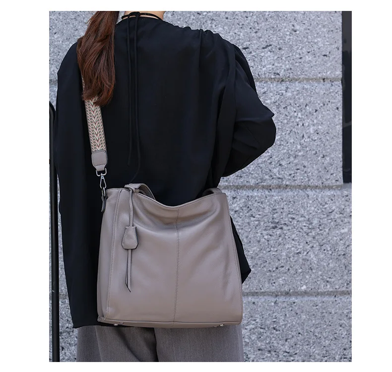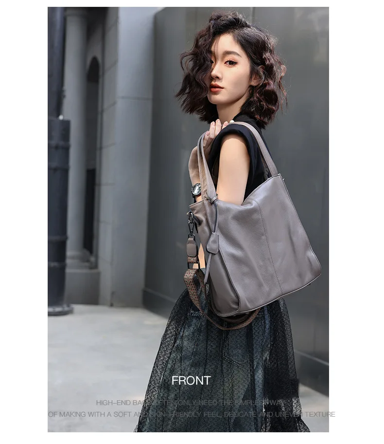 Motingsome Genuine Leather High Quality Woman Bag Soft Causal Tote Lady Handbag Black Daily Bags Simply Shoulder Purse 2024 New