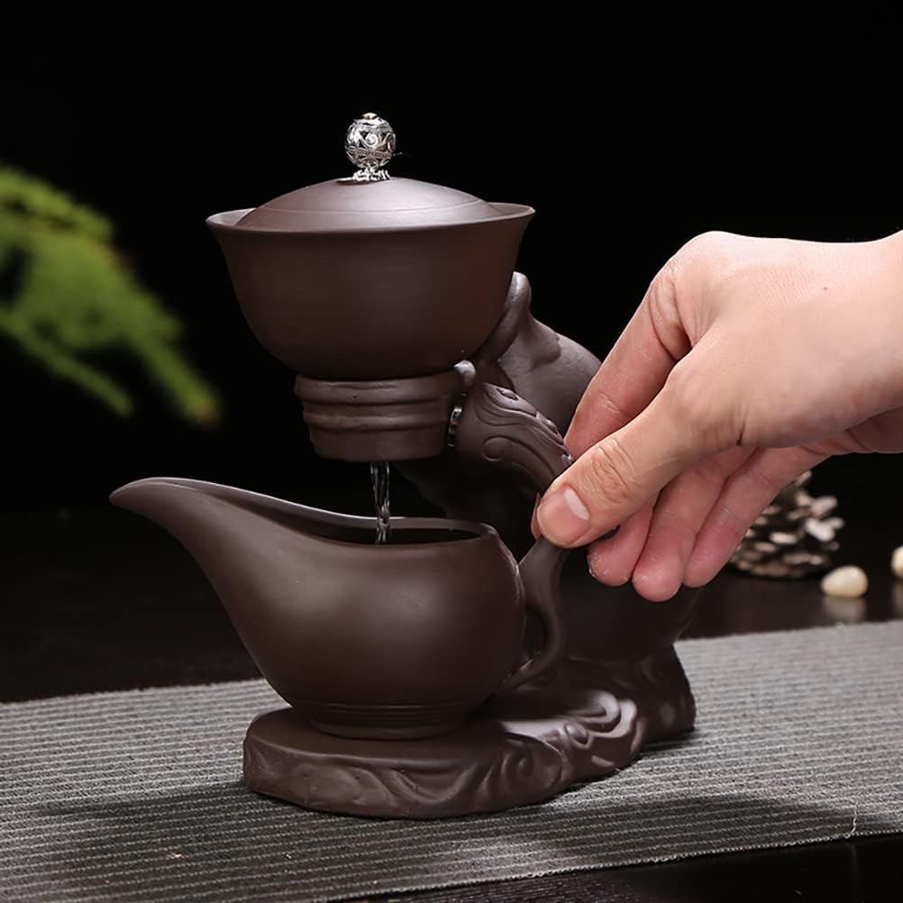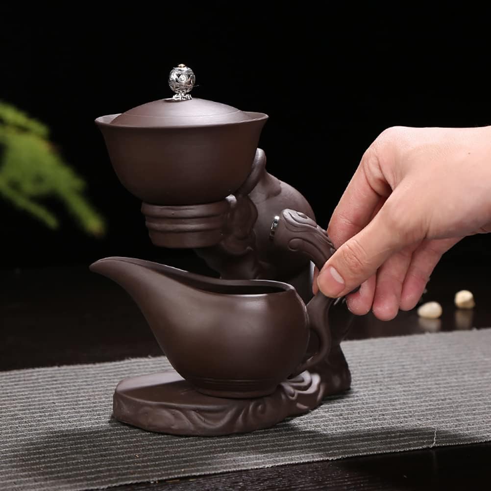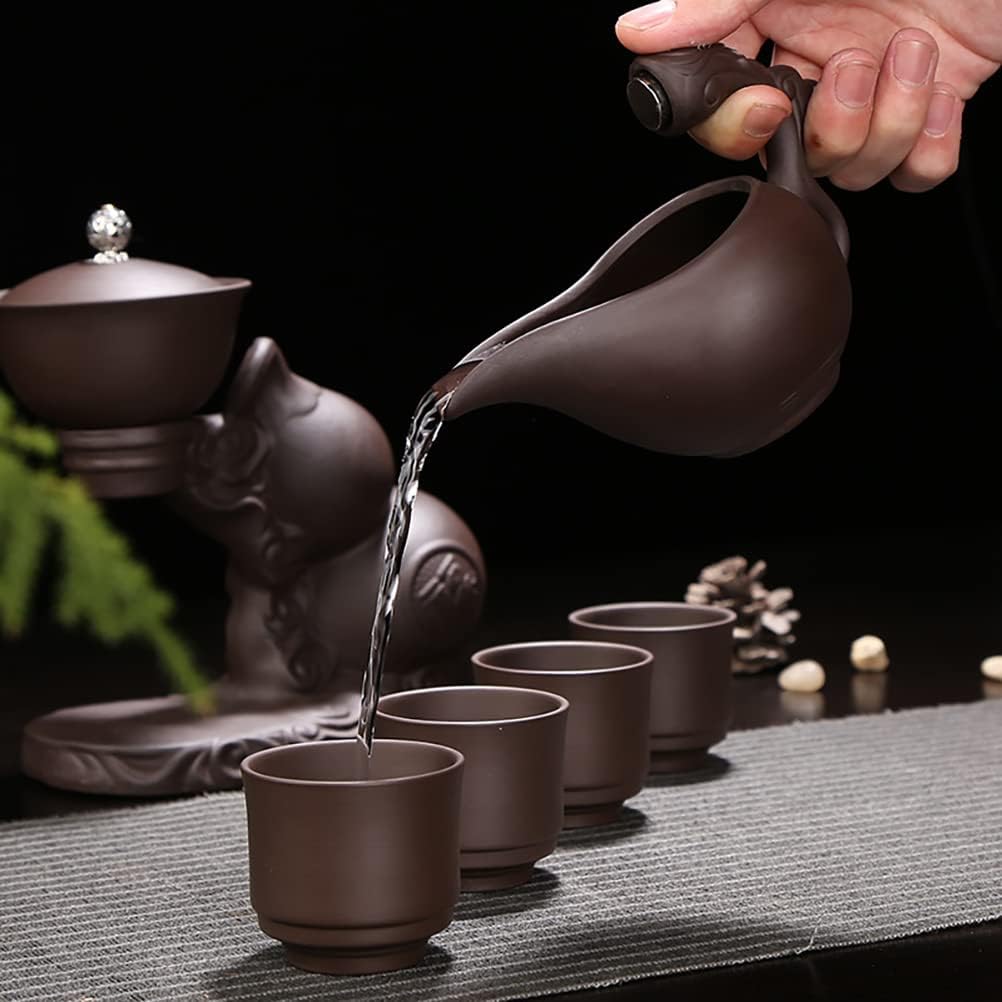 MOZEO Zisha Teapot Set Semi Automatic Drip Rotating with Infuser Lazy Kungfu Tea pot Set with 6pcs Cups (Teapot set)