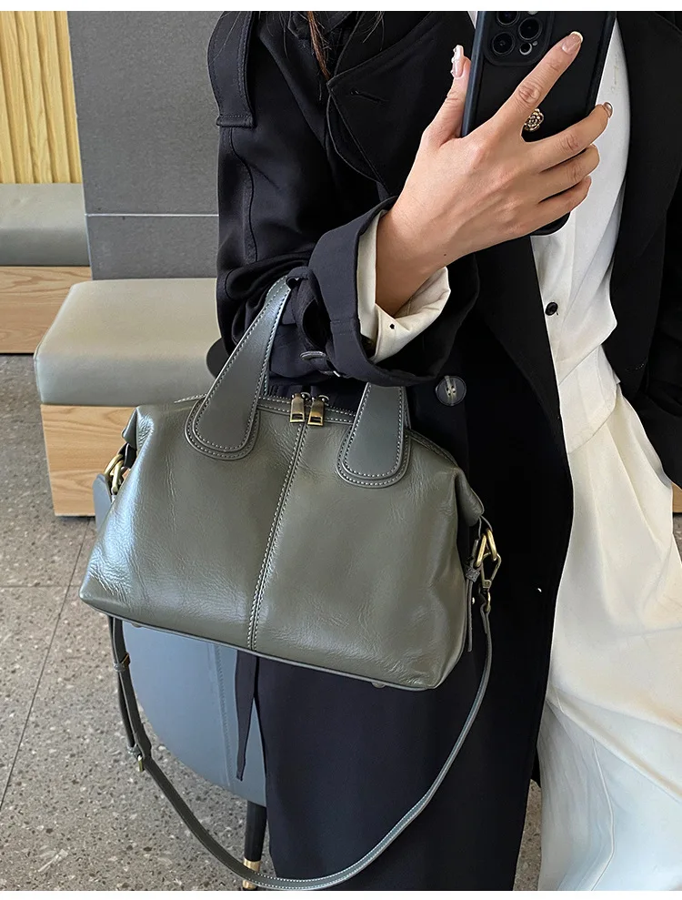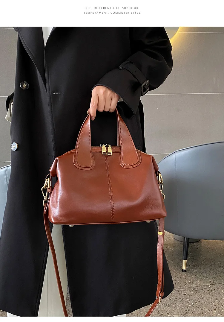 MS Genuine Leather Woman Bags Luxury Retro Shoulder Handbag Vintage Lady Messenger Casual Tote Crossbody Purses Black 2023 New