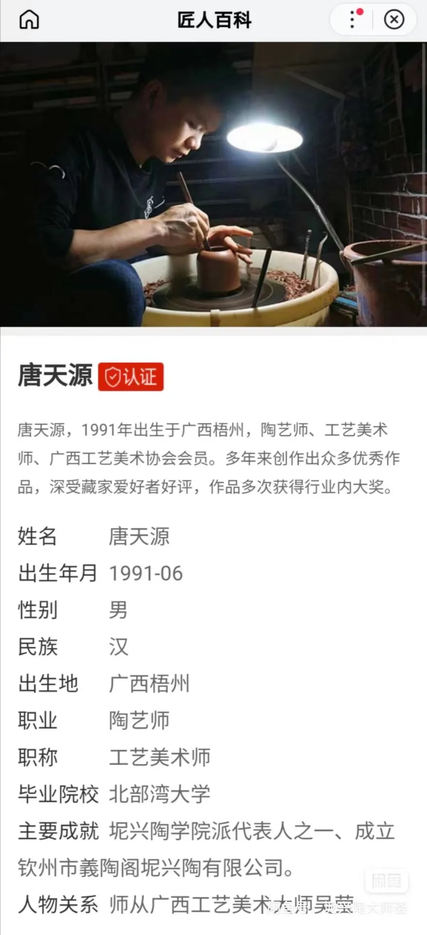 Qinzhou Nixing Pottery] Tang Tianyuan - Master of Qinzhou City Arts and Crafts