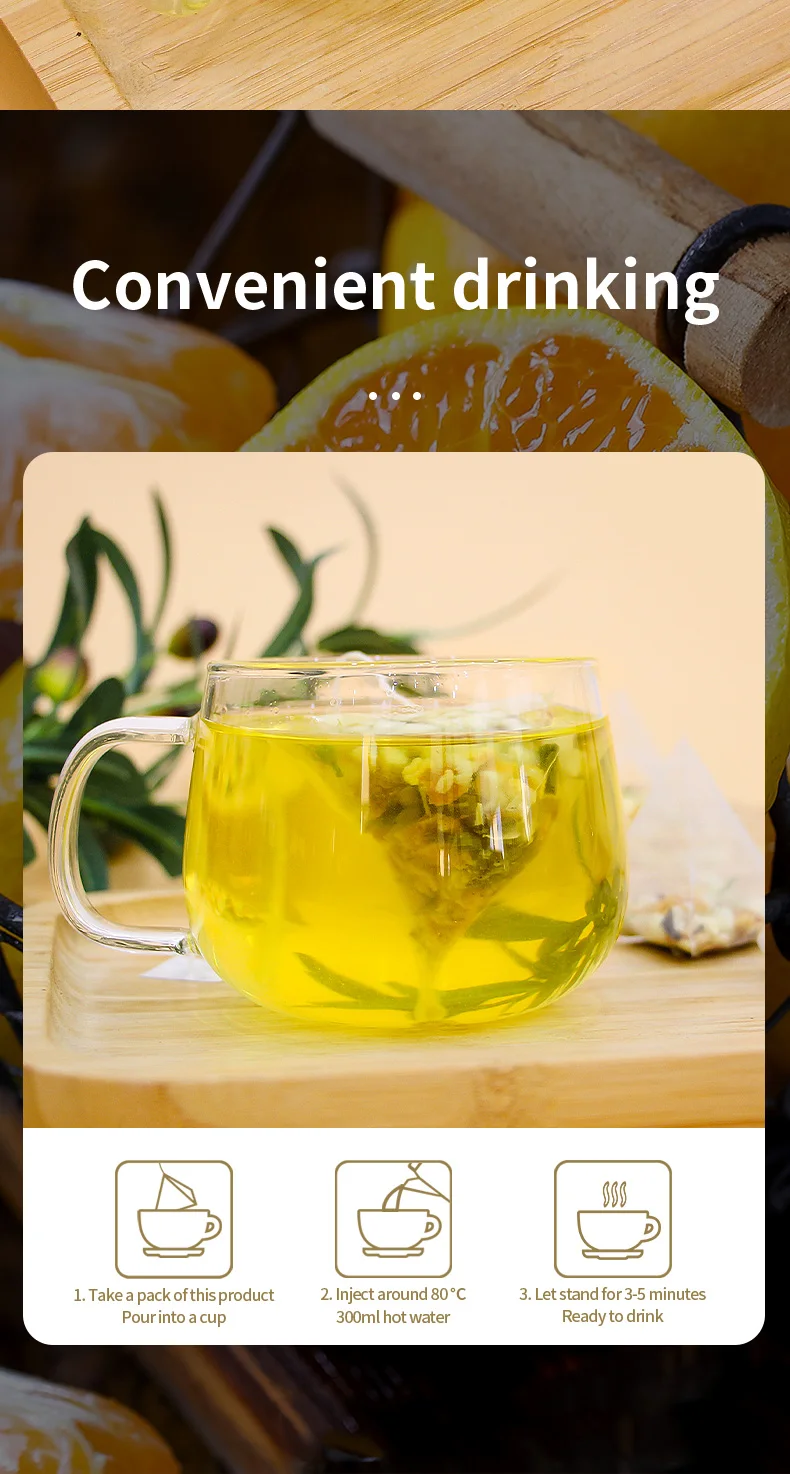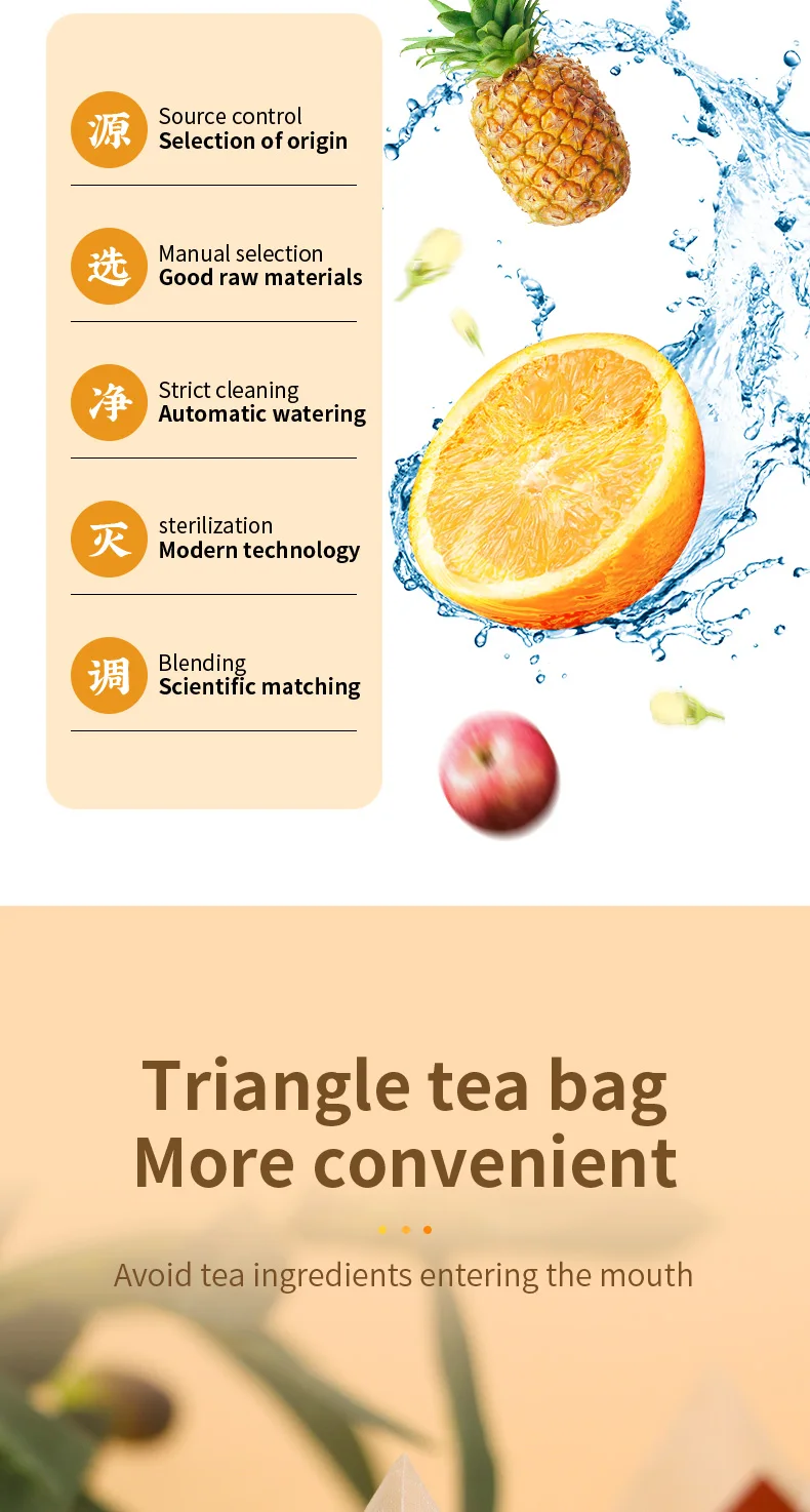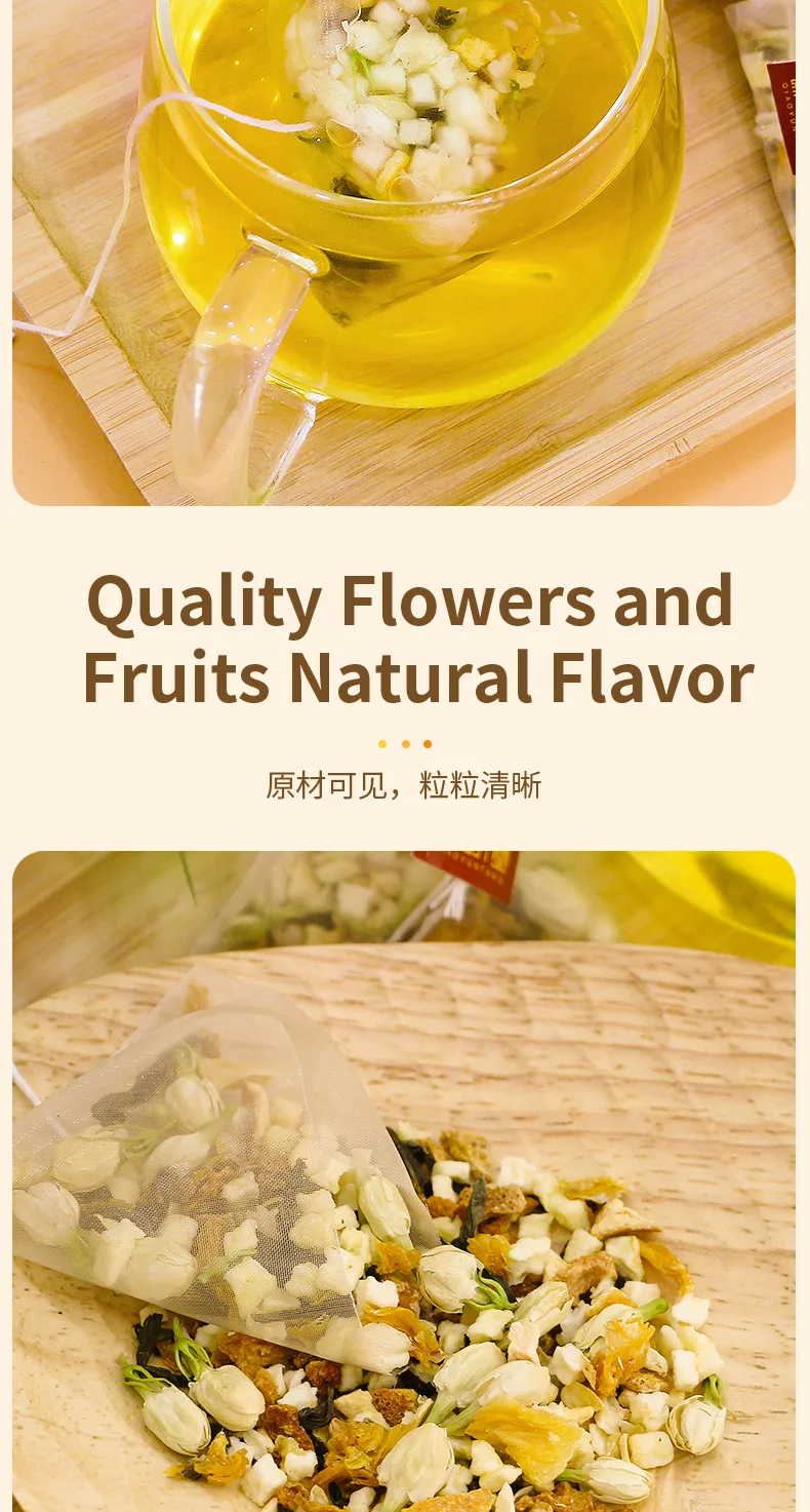 This product adopts a triangular tea bag design, which can prevent tea ingredients from entering the mouth when drinking.