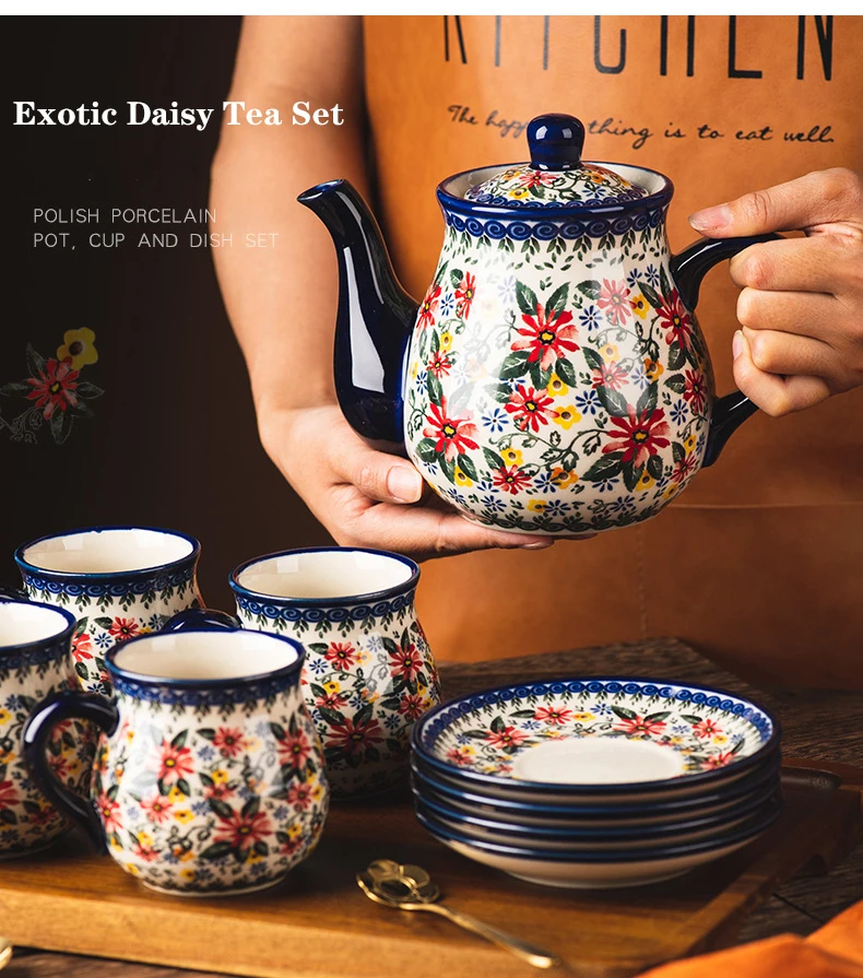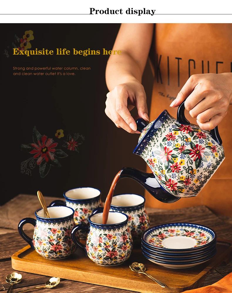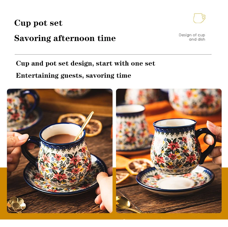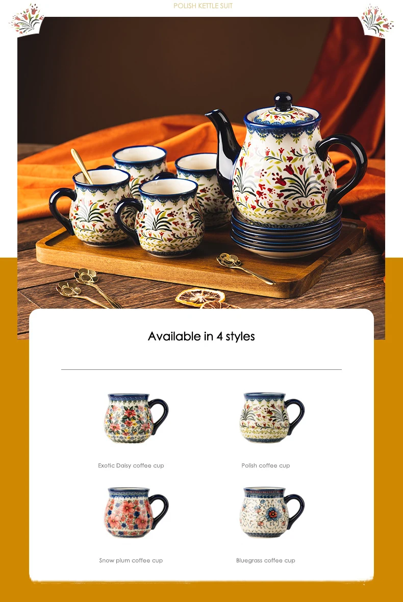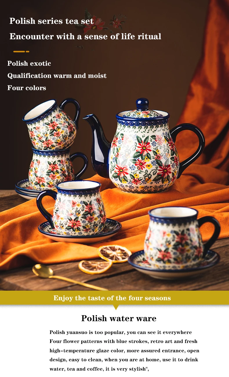 Polish Ceramic Coffee Cup Household Office Teapot Teacup Cup And Saucer Set Water Milk Tea Mug Afternoon Tea Drinkware With Tray
