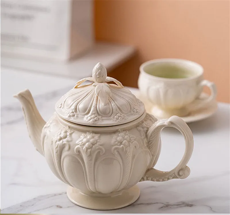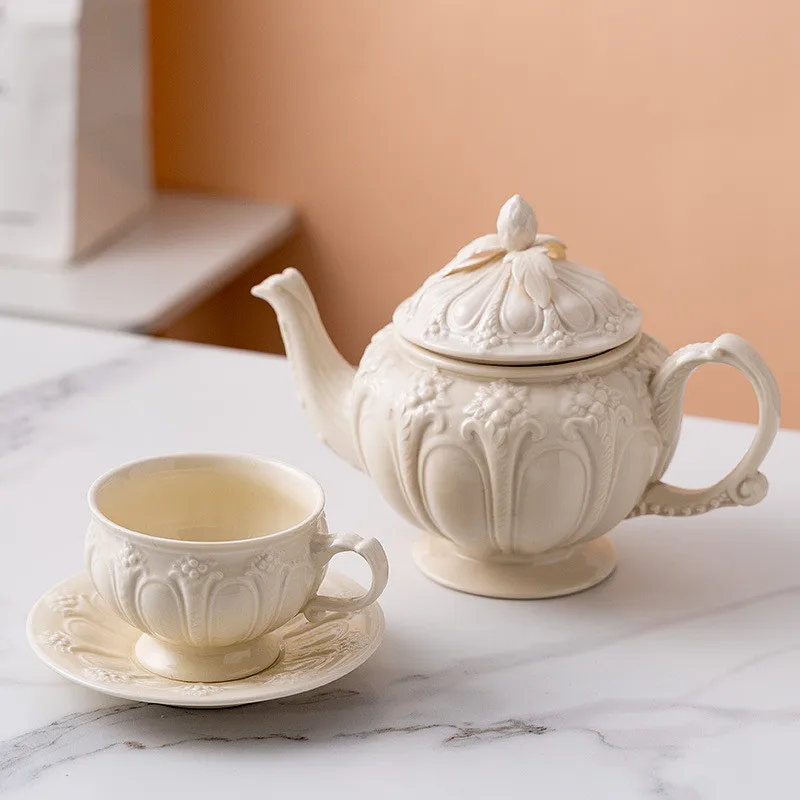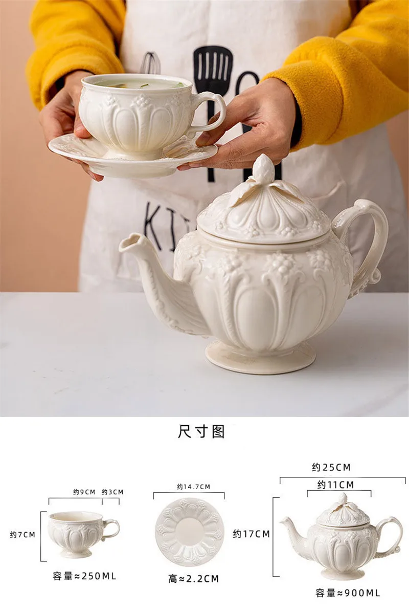Porcelain Tea Cup and Saucer Set White Teapot English Afternoon Teacup High-Grade Coffee Pot Ceramic Coffee Cup Mug Party Cafe
