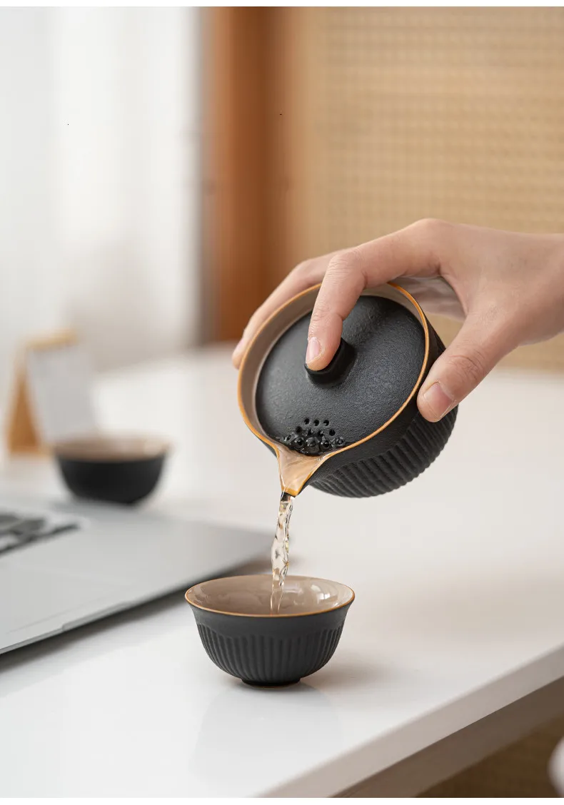 Portable Travel Tea Set Ceramic Teapot Kettle Quik Pots One pot and two cups Teaware Sets Chinese Drink TeapotsTea Cup