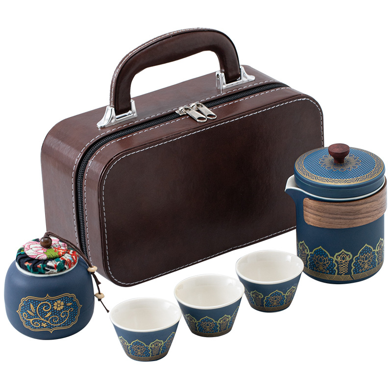 Portable Travel Tea Set Mini Set Purple Sand Outdoor Travel Camping Express Cup Glass Teapot Tea Drinking Equipment