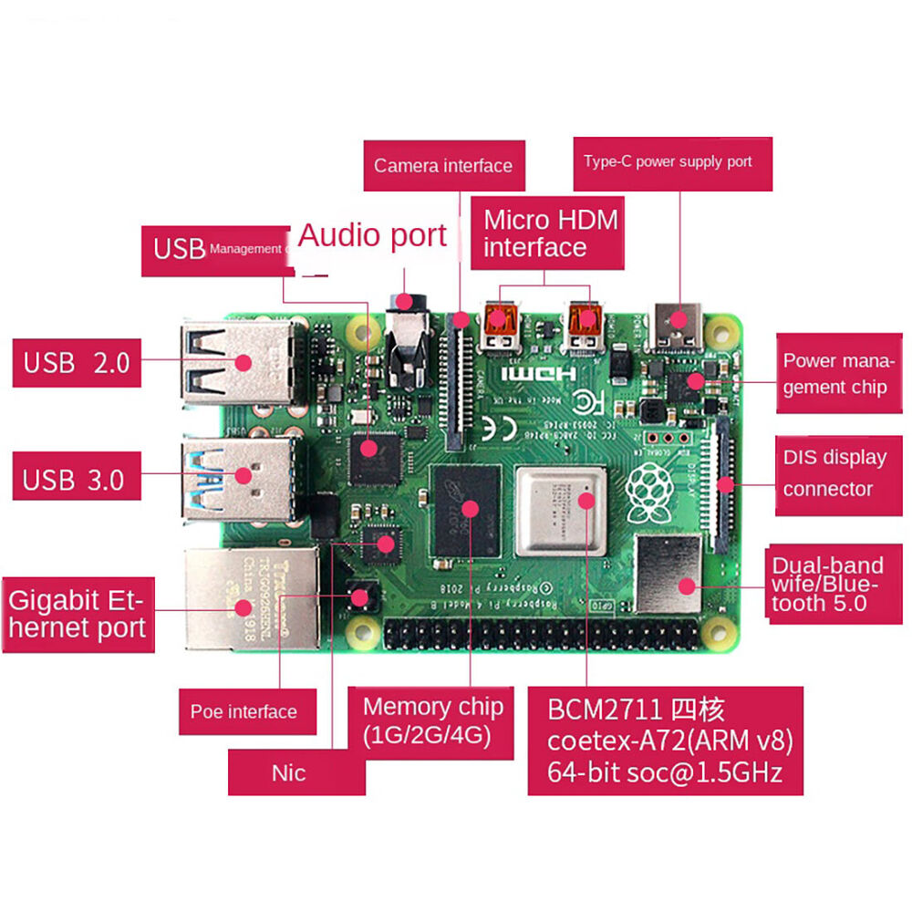 Raspberry Pi 4 Model B 2GB 4GB 8GB RAM Board 1.5GHz 64-bit WiFi Bluetooth 5.0