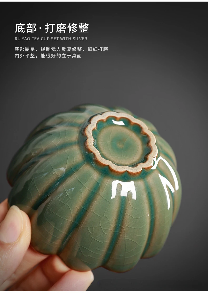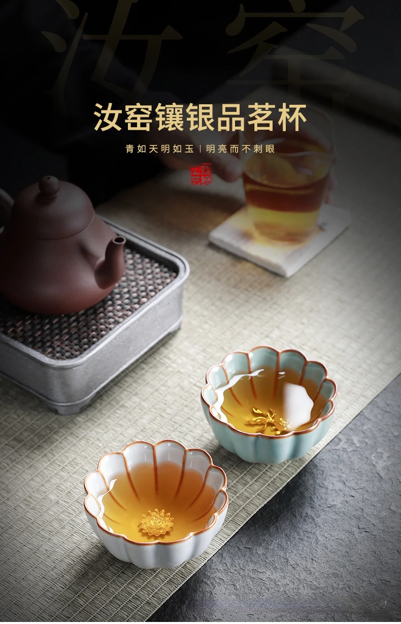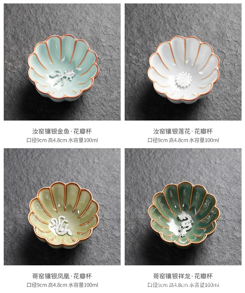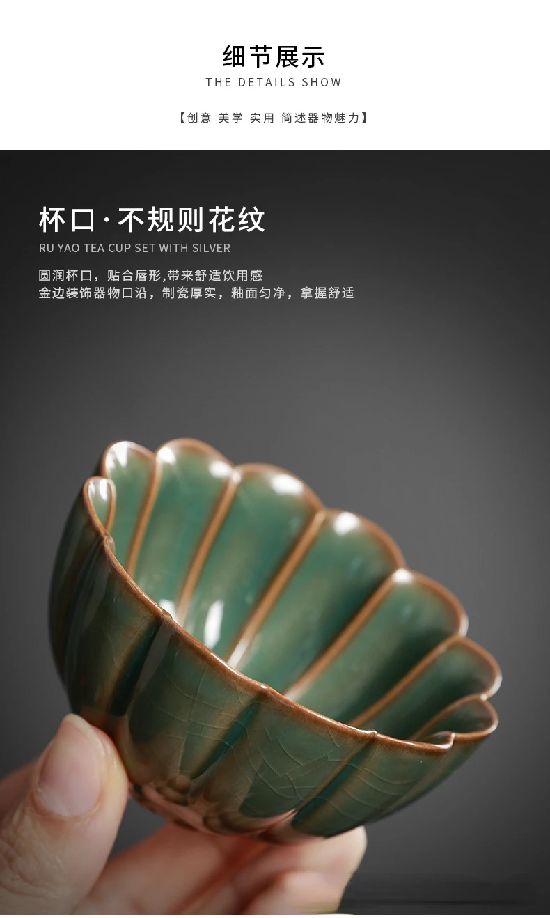 Ru Kiln Inlaid Silver Tea Cup Master Cup Kung Fu Tea Set Ceramic Tea Cup Retro Large Tea Bowl Exquisite Handmade Petal Teacup