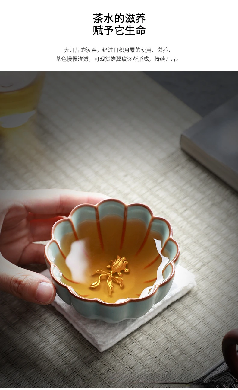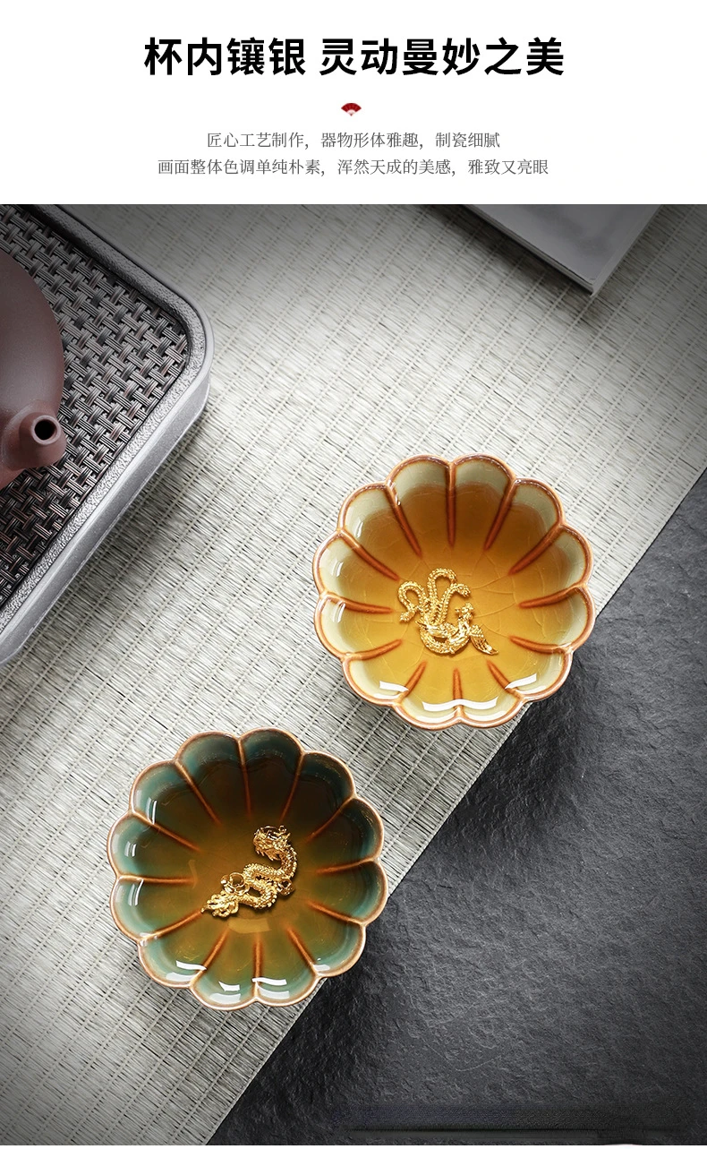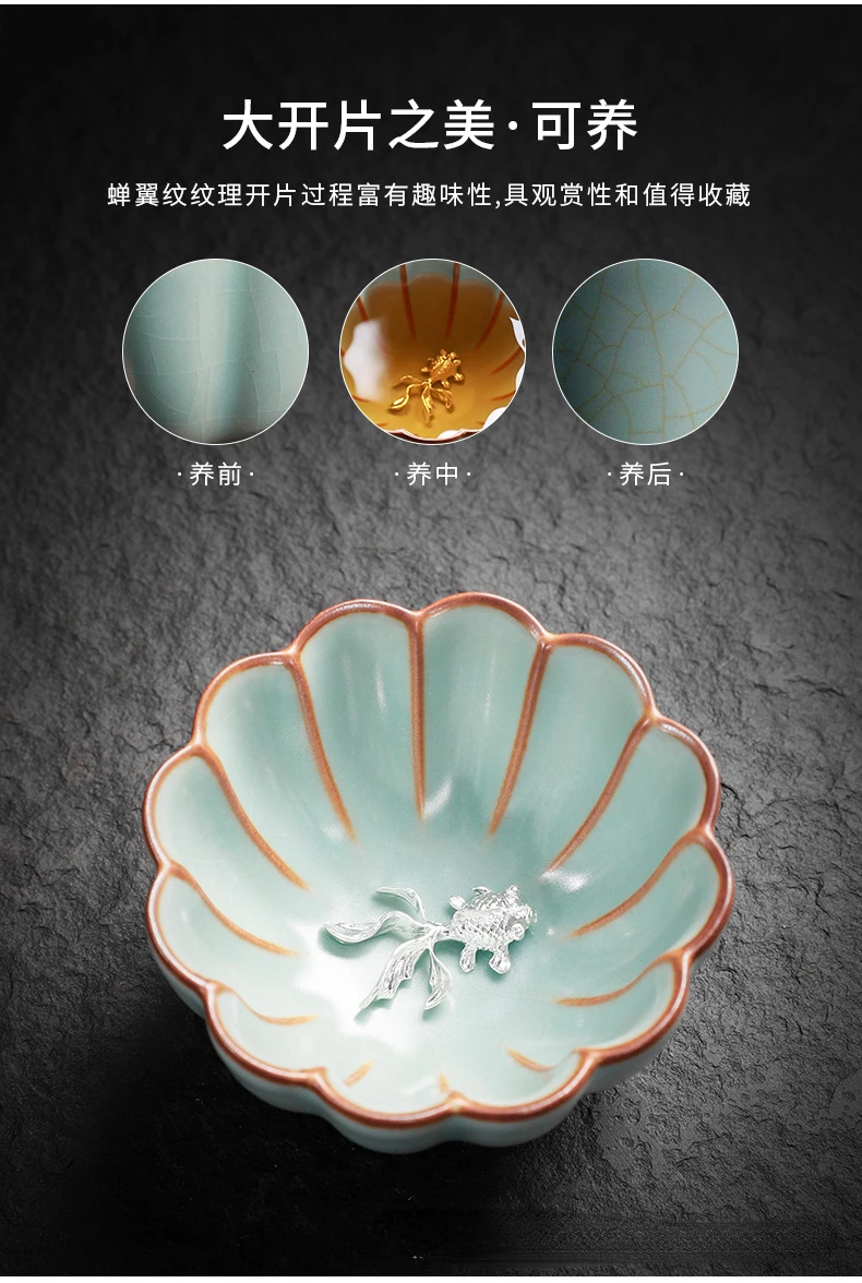 Ru Kiln Inlaid Silver Tea Cup Master Cup Kung Fu Tea Set Ceramic Tea Cup Retro Large Tea Bowl Exquisite Handmade Petal Teacup