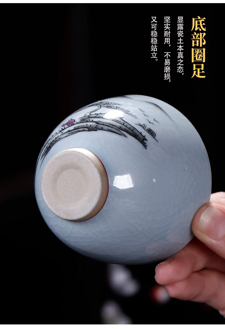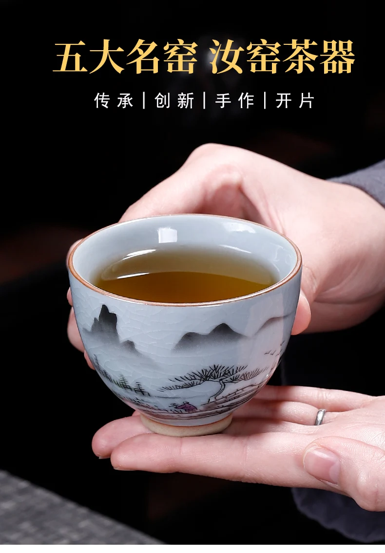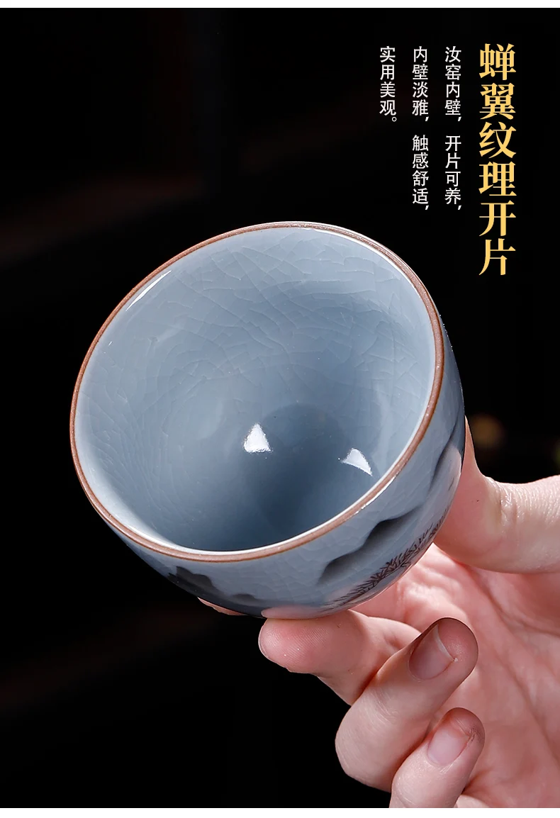 Ru Kiln Tea Cup, Ru Porcelain Can Raise, Open Piece Ceramic Master Cup, Large Kungfu Tea Cup, Handmade Tea Bowl