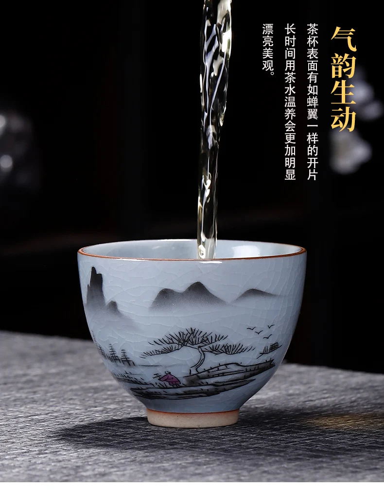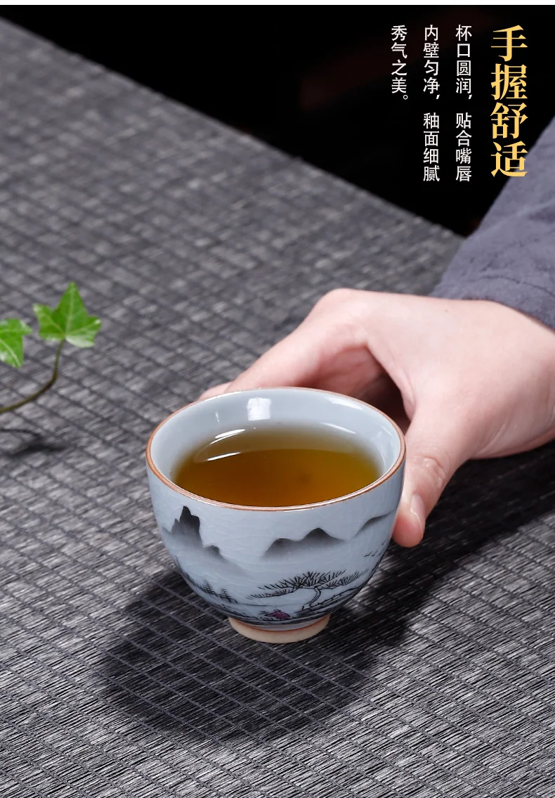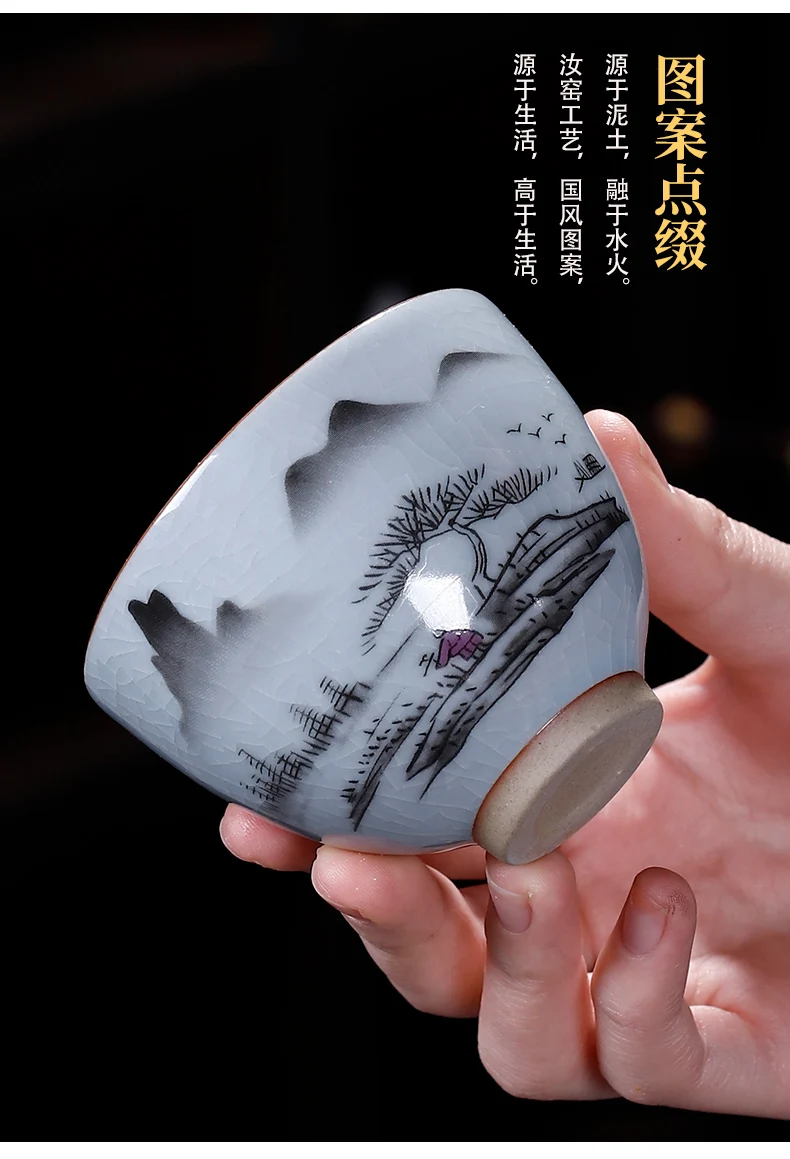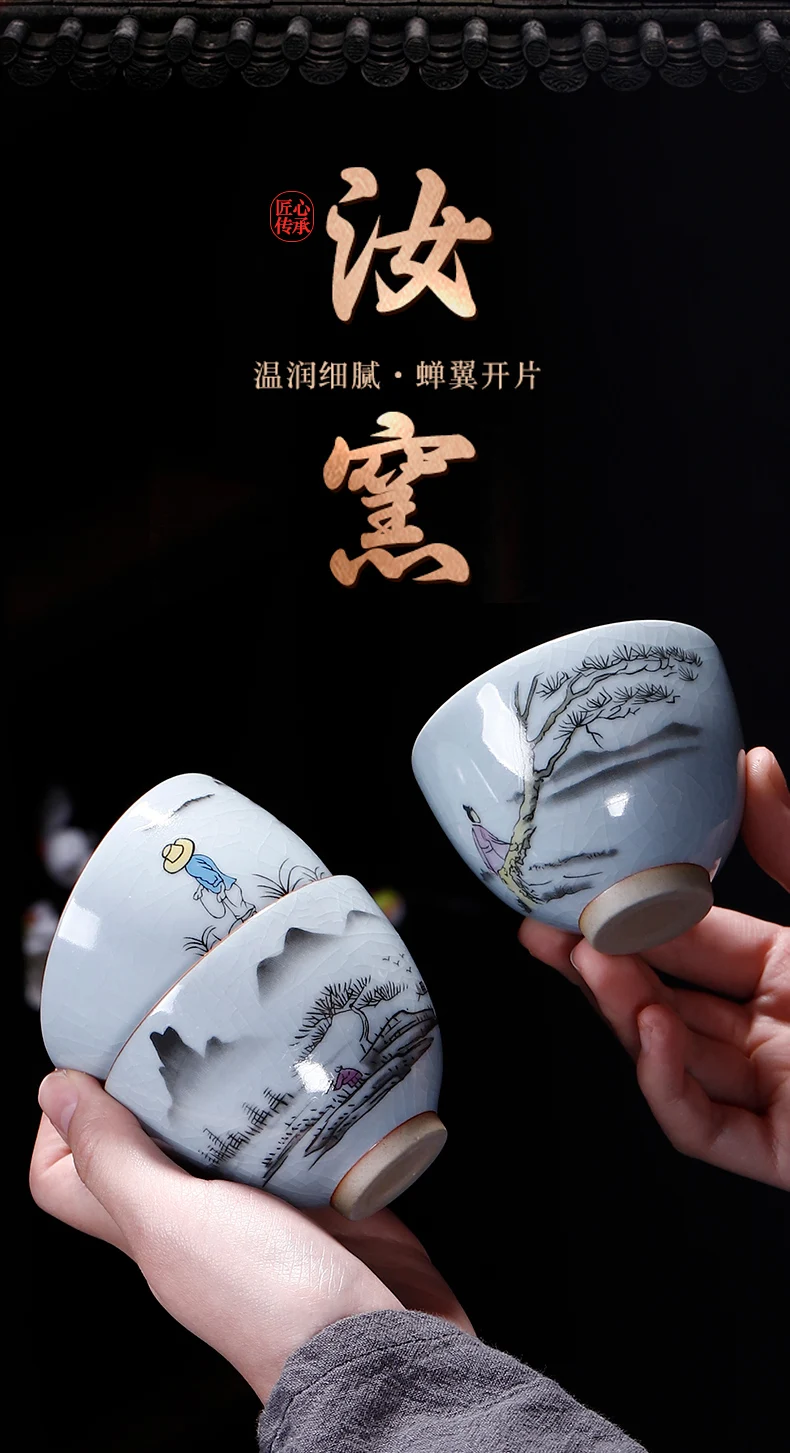 Ru Kiln Tea Cup, Ru Porcelain Can Raise, Open Piece Ceramic Master Cup, Large Kungfu Tea Cup, Handmade Tea Bowl