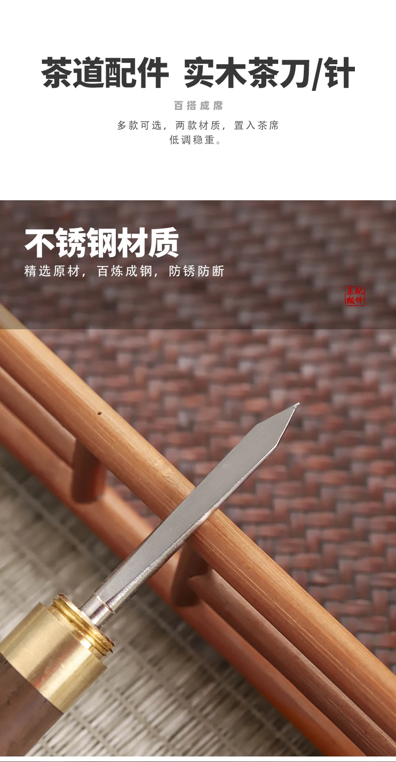 Sandalwood-Stainless Steel Tea Knife, Puer Dedicated Tea Needle, Spiral Kitchen Accessories