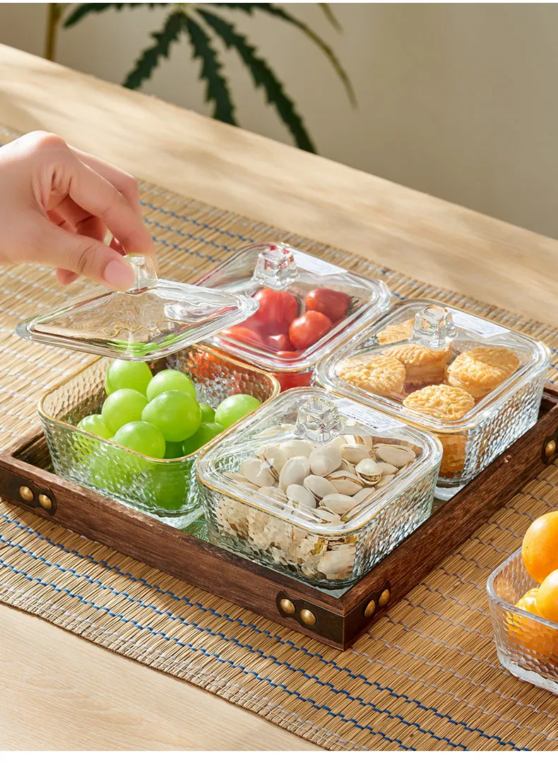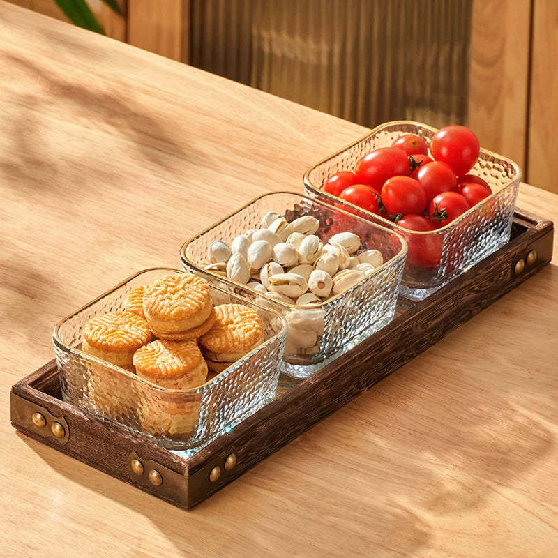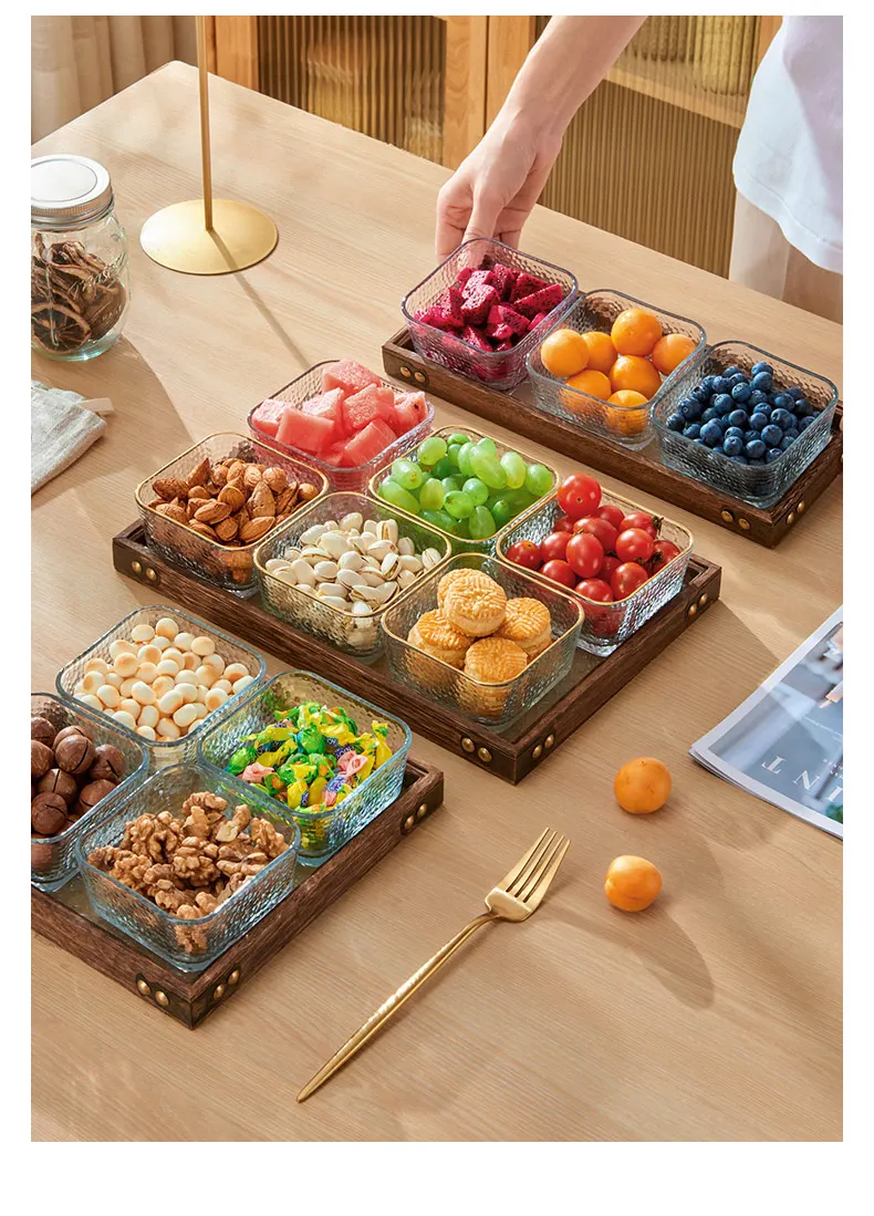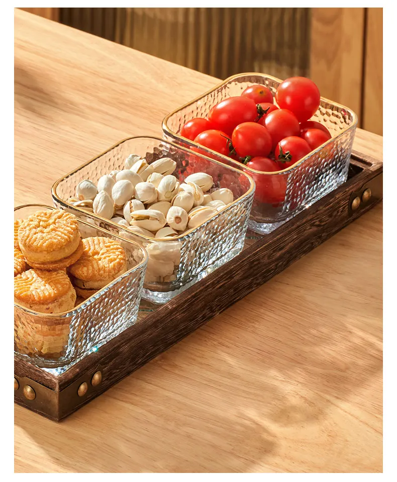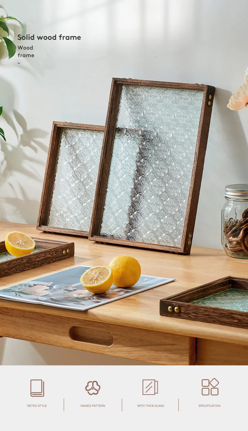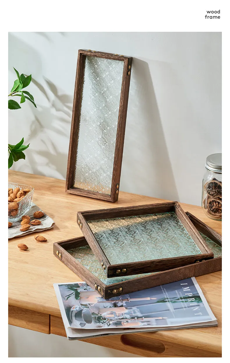 Solid Glass Wooden Tea Table Tray Coffee Snack Food Meals Chinese Tea Serving Tray Rectangular Fruit Bowl