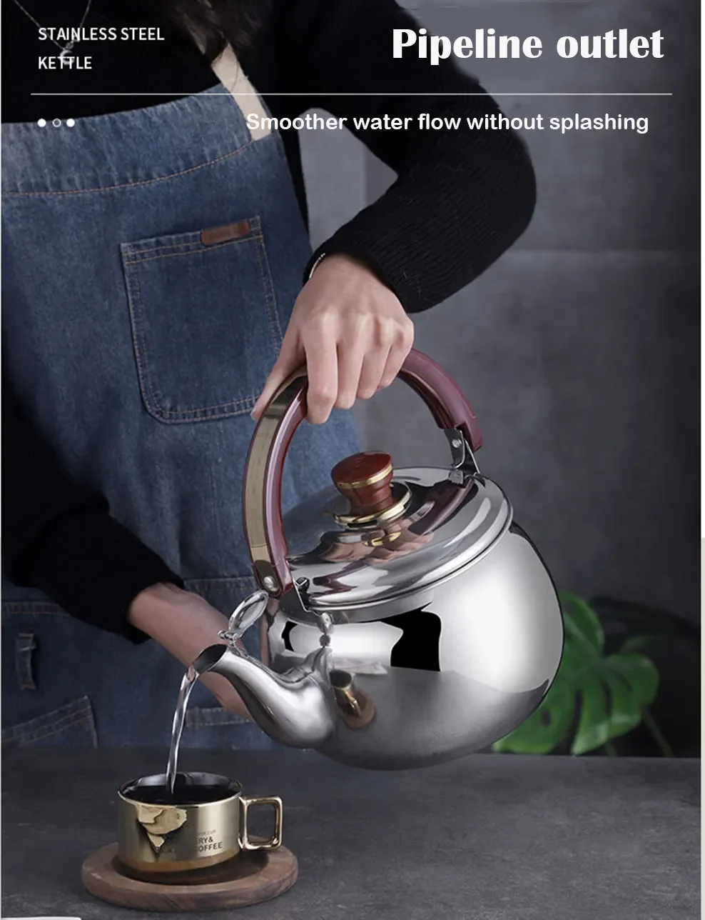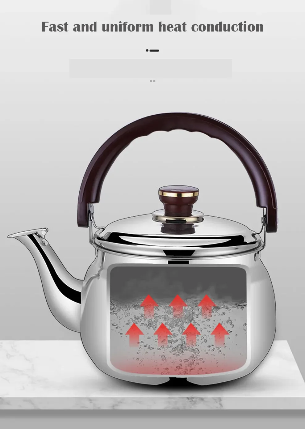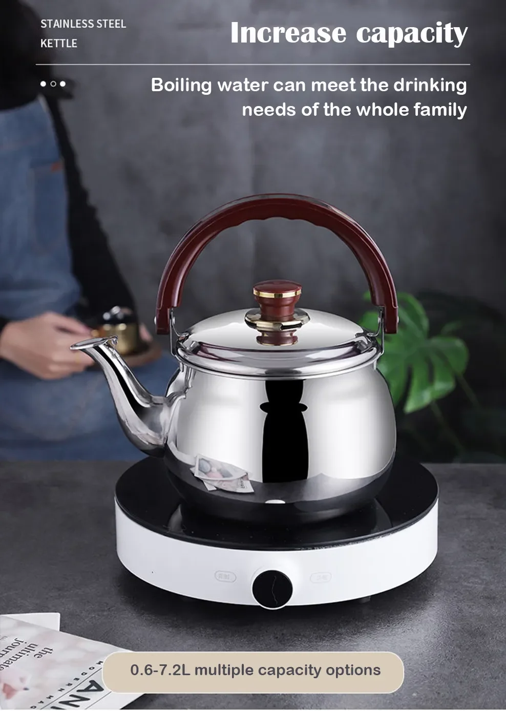 Stainless Steel Boiling Water Kettle Thicken Large Capacity Whistling Pot Beep Reminder Teapot Suitable For Induction Cooker
