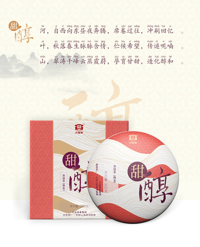 TIAN CHUN * 2019 TAETEA Menghai Dayi Pu-erh Ripe Cake Organic Black Tea 300g Box
