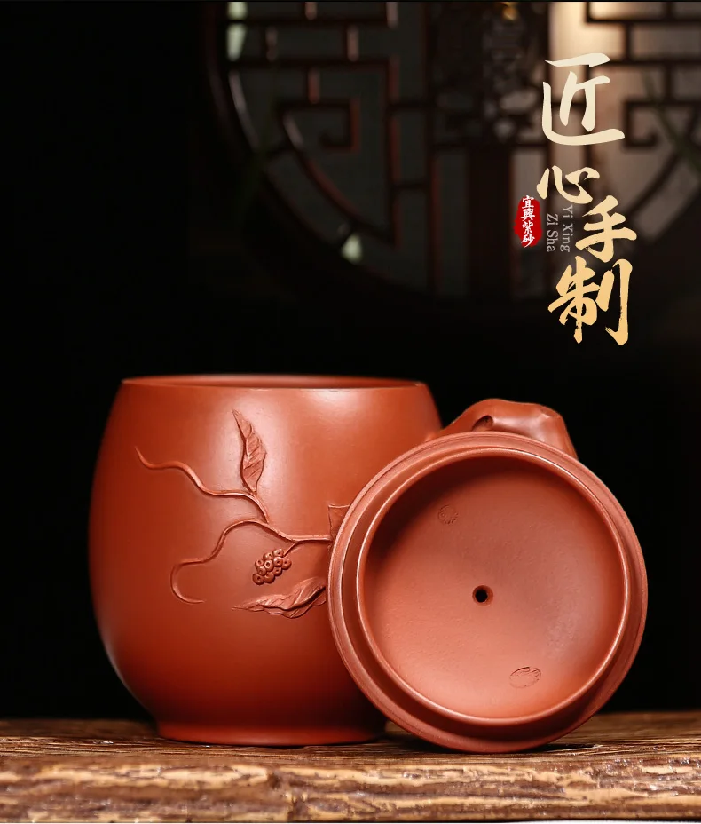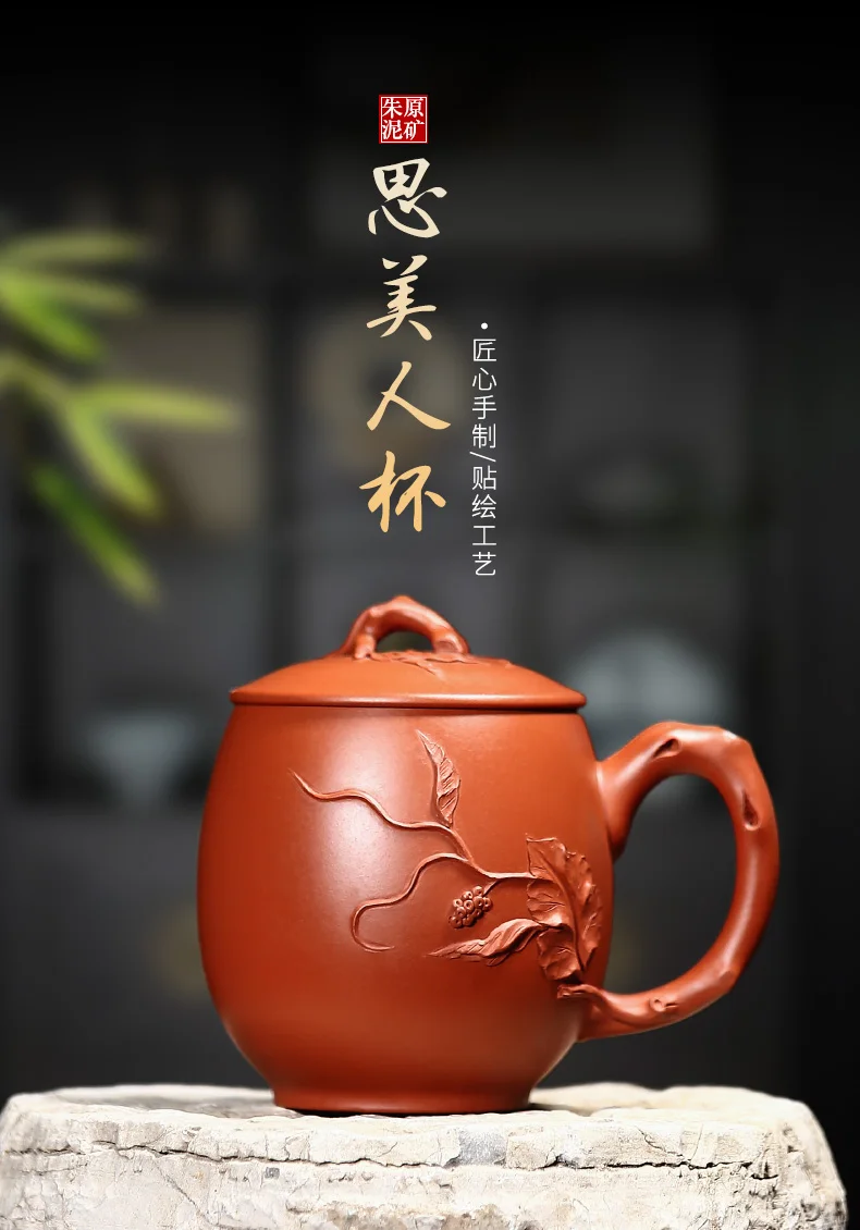 True yixing purple sand cup pure manual cover cup tea cup run of mine ore mud heap flower decals, zhu beauty cup