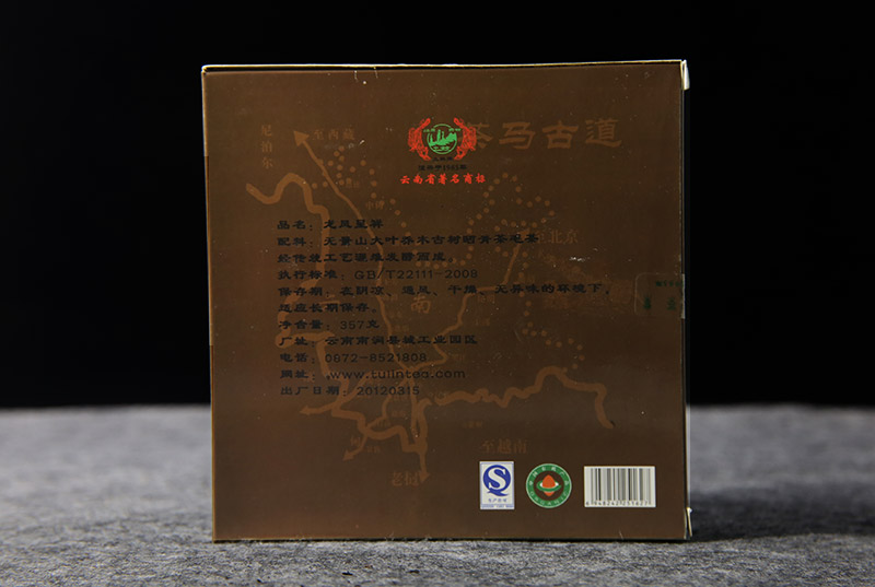 Product detail: Product name: TuLin Feng Huang 2012 "Long Feng Cheng Xiang" Five-Year Old Material Tea type: Ripe tea Net weight: 357g/Pcs Origin: Yunnan, China Storage: Avoid sunlight, ventilation places Manufacturer: TuLin Tea Factory Tea Material: Shaiqinmao tea leaves of Yunnan big leaves species ( Without any additive)
