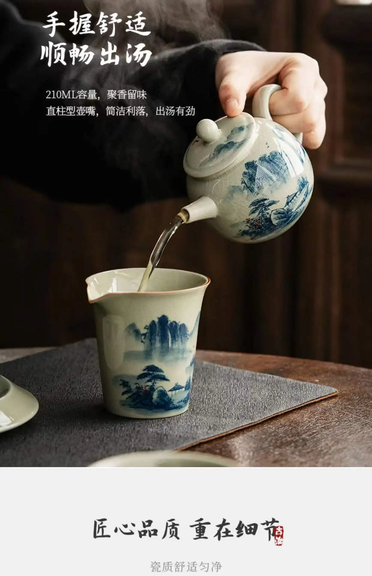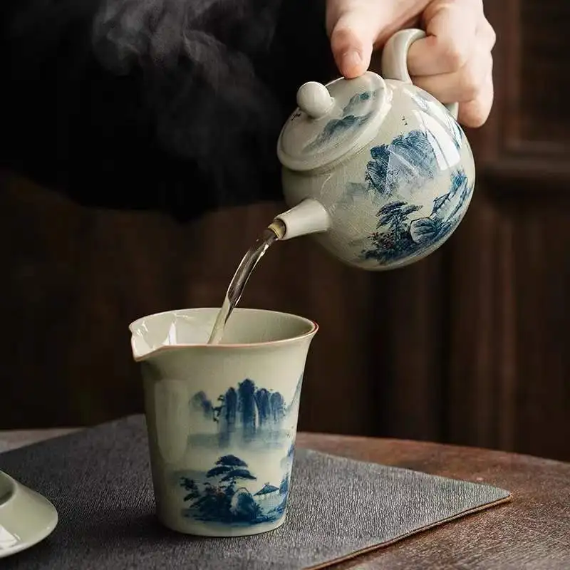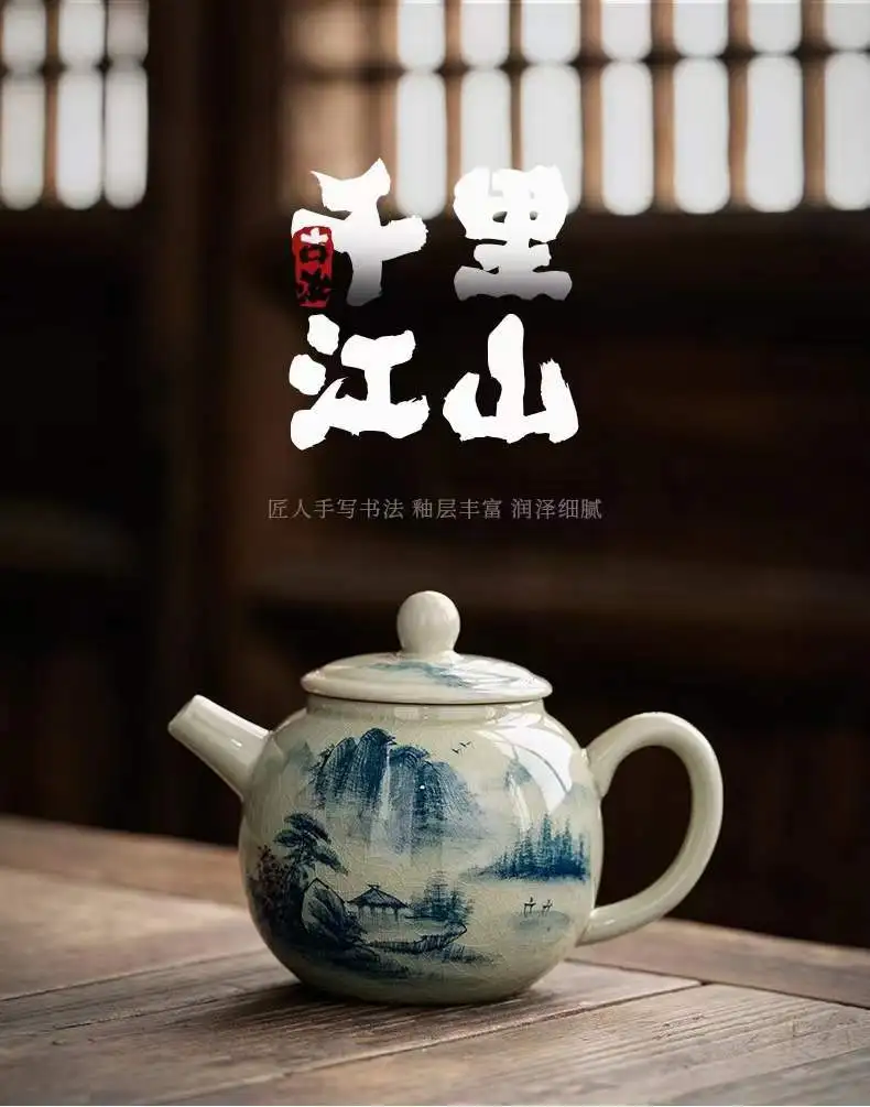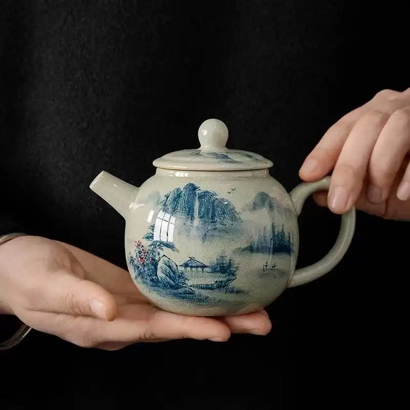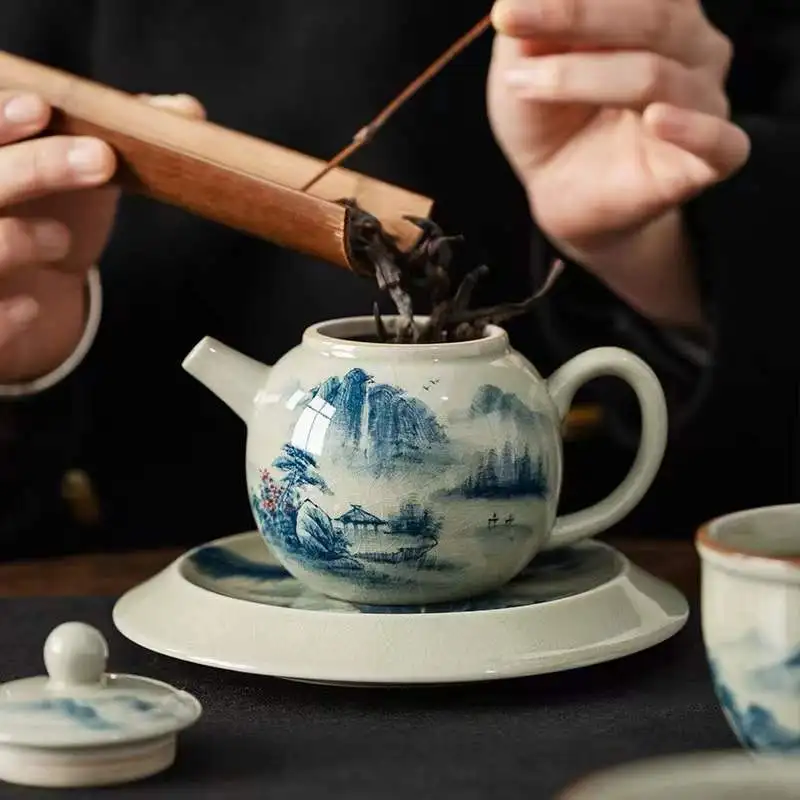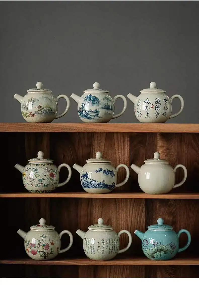Vintage Teapots Kungfu Ceramic Teaware Teacups Set Chinese Luxury Retro Tea Pots for Home Use Handpainted Pottery Tea Kettle