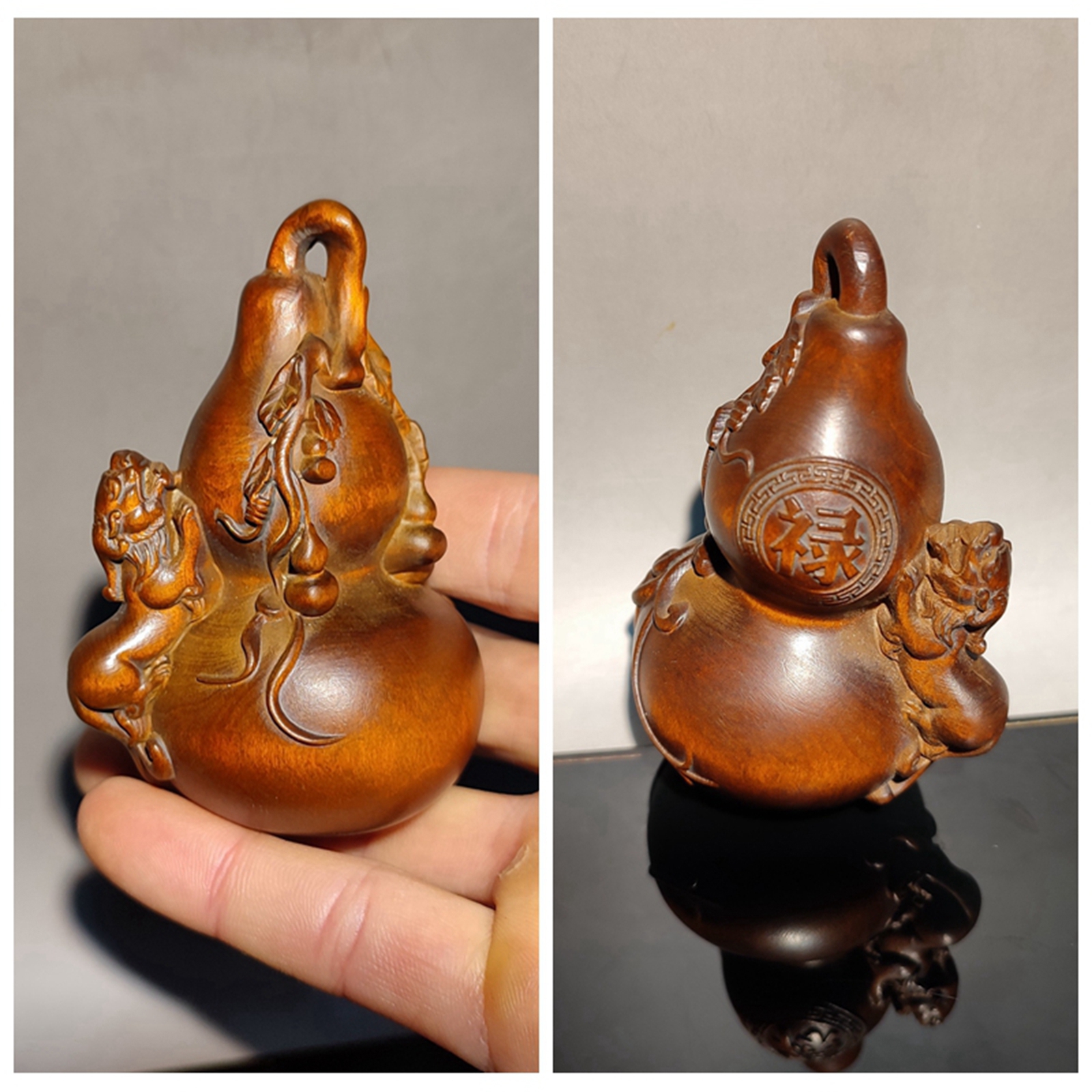 vintage wooden carving gourd money dragon statue home decor living room luck art Size: (3.15x1.96x1.77) "inch= 8*5*4.5 cm Weight: 58 g = pound = 2.04 oz
