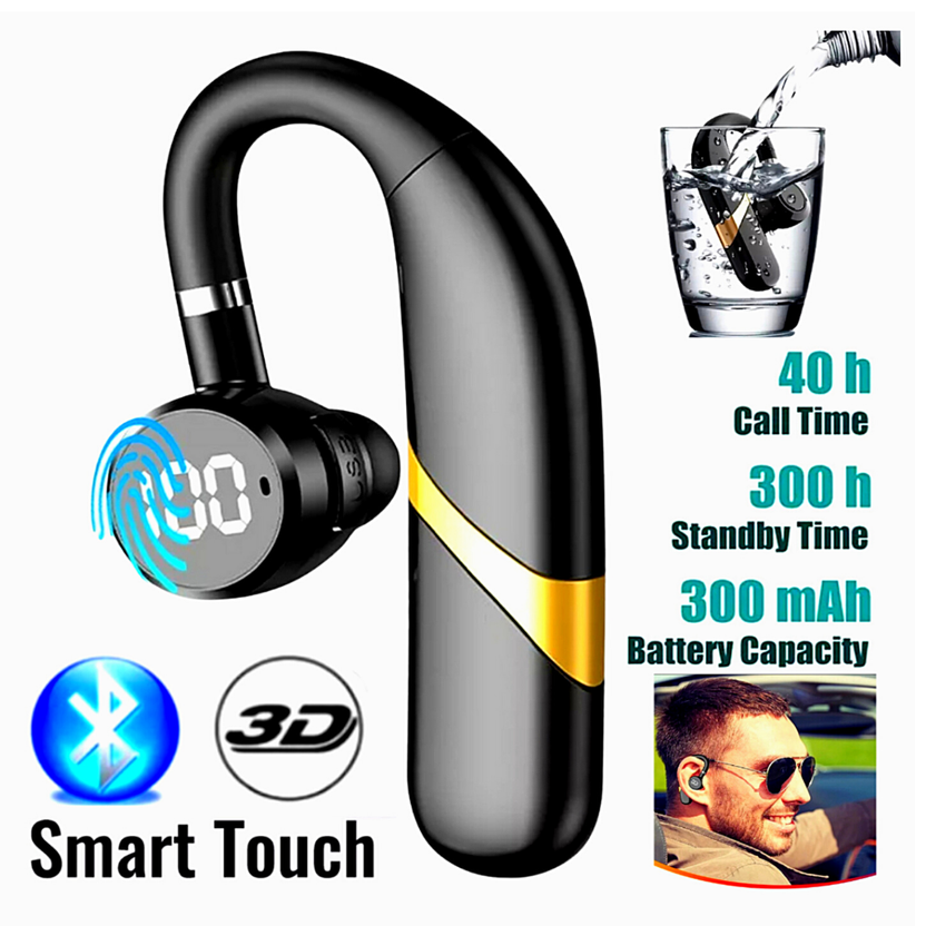Product Feature Bluetooth 5.0: Adopt the latest Bluetooth 5.0 technology, faster and more stable pair and connection. Built-in advanced boom microphone and dynamic speaker, provide crystal clear, true sound. Noise cancellation Mic suitable for various environment speaking. Comfortable Wearing: 180 ° Rotating earplug, free to convert left and right ears and adjust the angle, no restrictions, comfortable enough to be worn for hours at a time. Super Long Battery Life: 300mah Battery, Up to 300 hours super long standby time, up to 40 hours of calling. With a LED display, You can see the power left any time. Wide Compatibility: This headset can pair with iPhone, Samsung, LG, Motorola, and other Android cell phones. You can Sport / Office / Work Out / Trucker Driving with the headset. Noise Reduction: With intelligent noise reduction technology, you can enjoy HiFi sound effect music or have an HD phone talking even in a noisy environment. Product Specification Type Headset Bluetooth Version Bluetooth 5.0 Transmission Distance 10 meters (33 feet) Bluetooth Protocol HFP / HSP / A2DP / AVRCP Charging Voltage 5V-1A Charger Time 1-2 hours Standby Time (Full Power Single Use) 300 hours Call Time (Full Power Single Use) 40 hours Earbuds Battery Capacity 300mAh Support System All Bluetooth devices and mobile phones Working Temperature -10 ℃ -55 ℃ Working Frequency 2.402-2.480GHz Impedance 32Ω Waterproof IPX7 Number of Earpieces Single Features Built-In, Built-in Microphone, Call functions, Extra Bass, HD Voice, Noise Cancellation, Noise Isolation, Rechargeable Battery, Replaceable Ear Tips, Stereo, 180-degree rotation, IPX7 waterproof, Smart touch Package Included 1 x Earphone 2 x Ear Caps 1 x Charging Cable 1 x User Manual