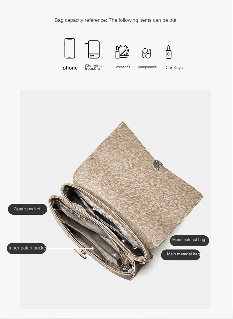 Women Fashion Versatile Lychee Pattern Leather Bag Trend Light Luxury Messenger Bag Solid Color High-end Shoulder Crossbody Bag