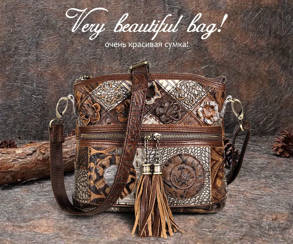 Title: Cobbler Legend Women Bag Bohemian Genuine Leather Designer Floral Bags Luxury Shoulder Bag Tassels Bag Vintage Splice Handbags