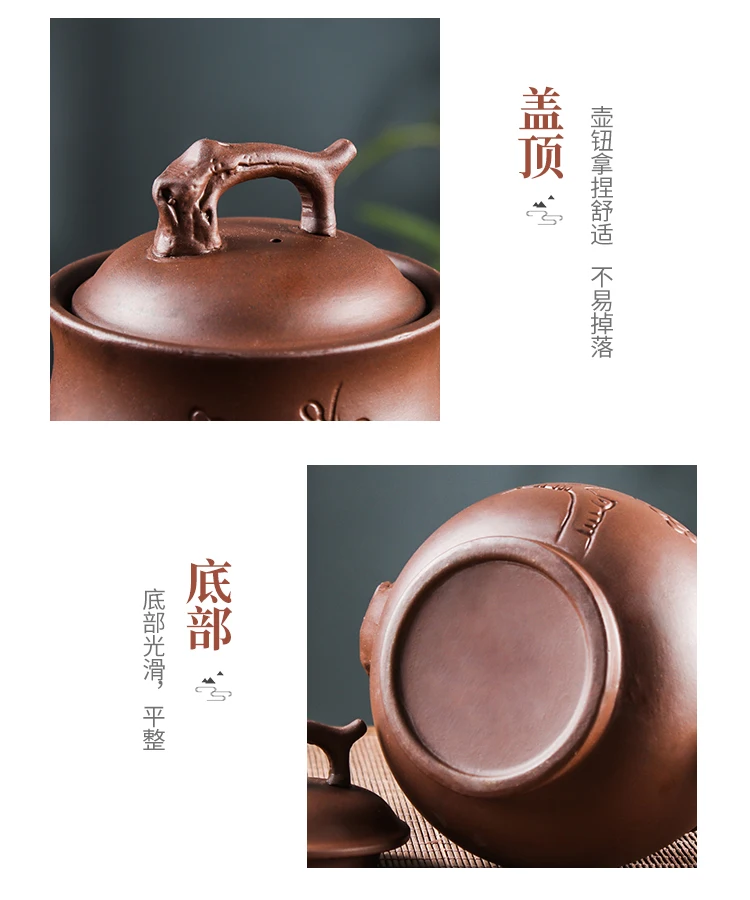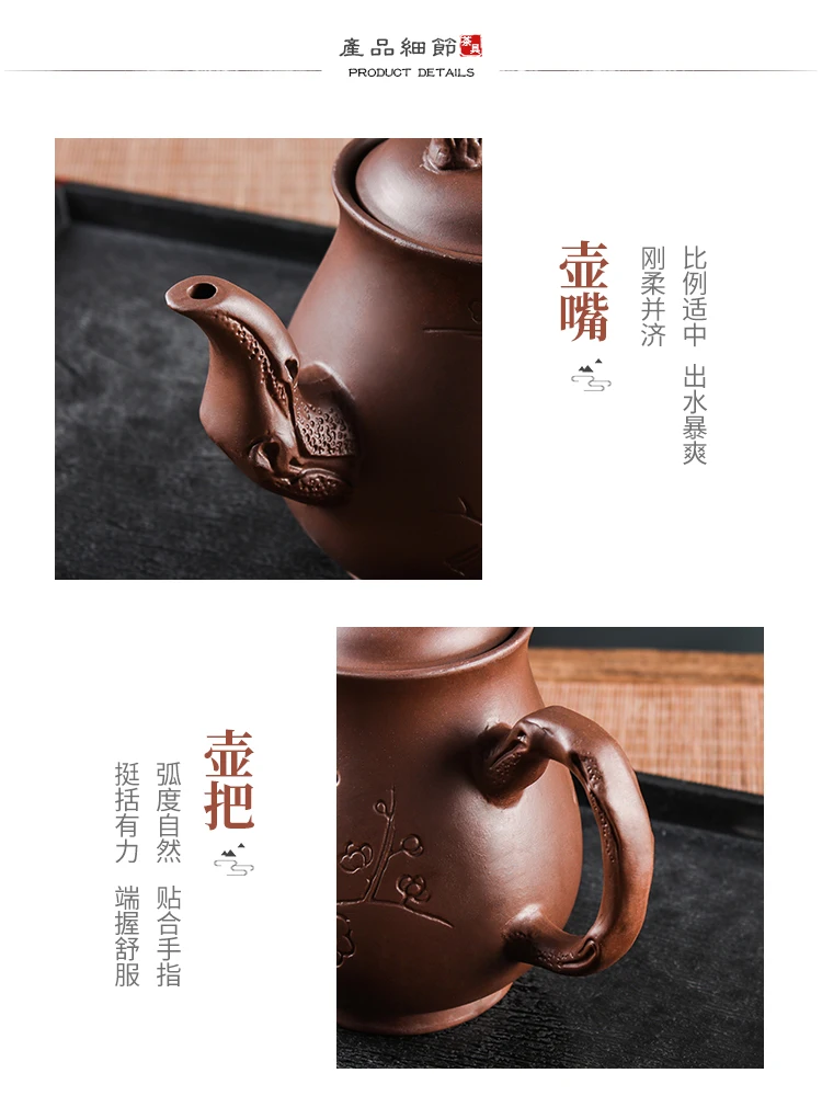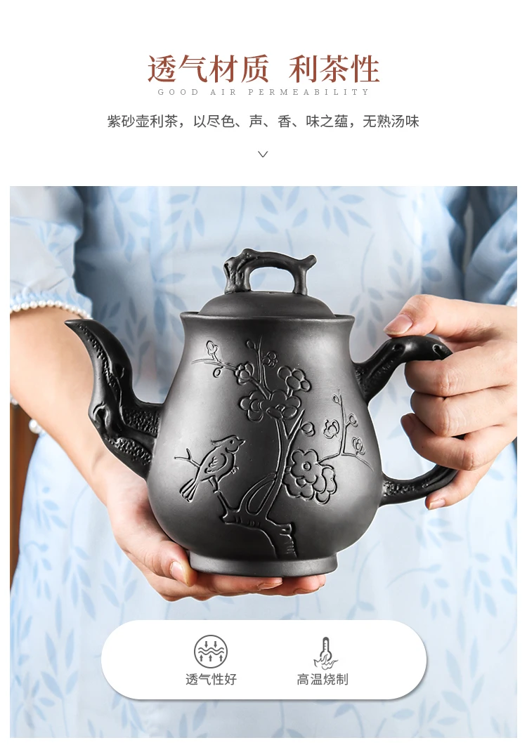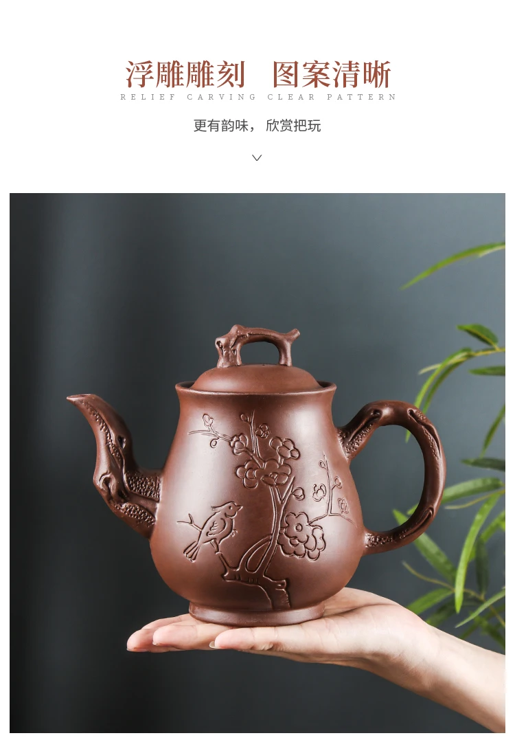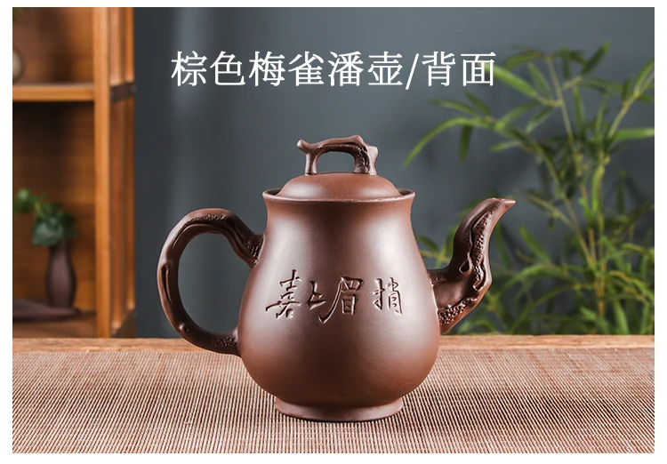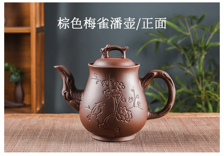 Yixing-Purple Clay Pot, Large Capacity, Plum Finch Pot, Household Cinnabar Teapot, Ceramic Kettle, Tea Cup, Kungfu Tea Set