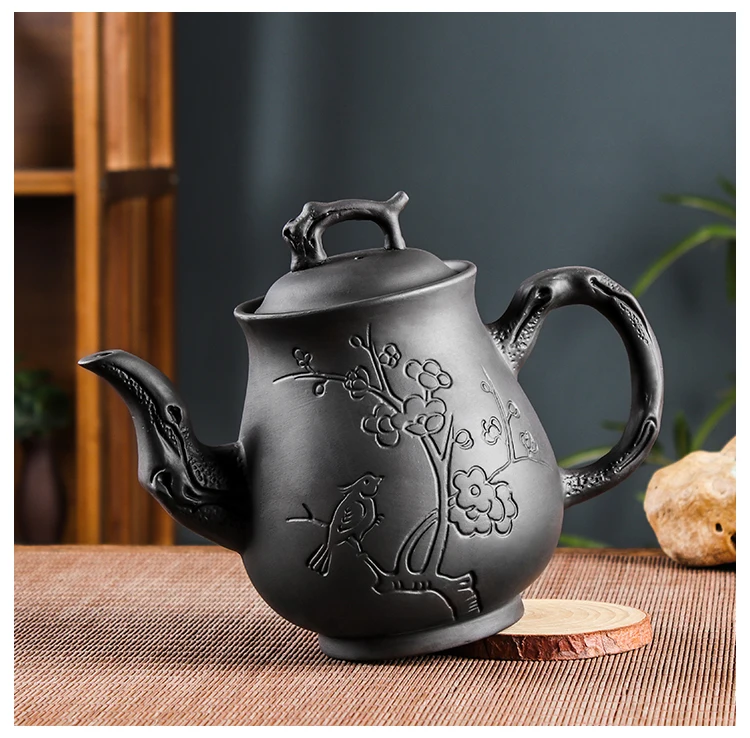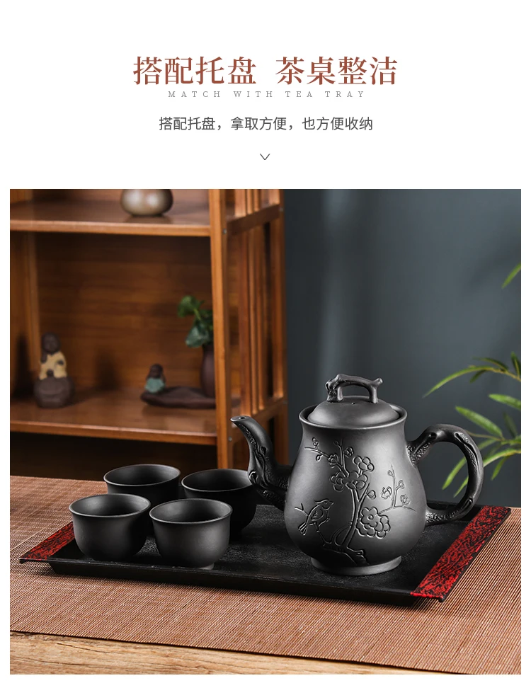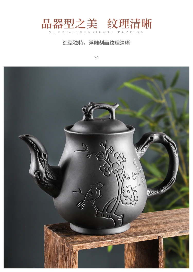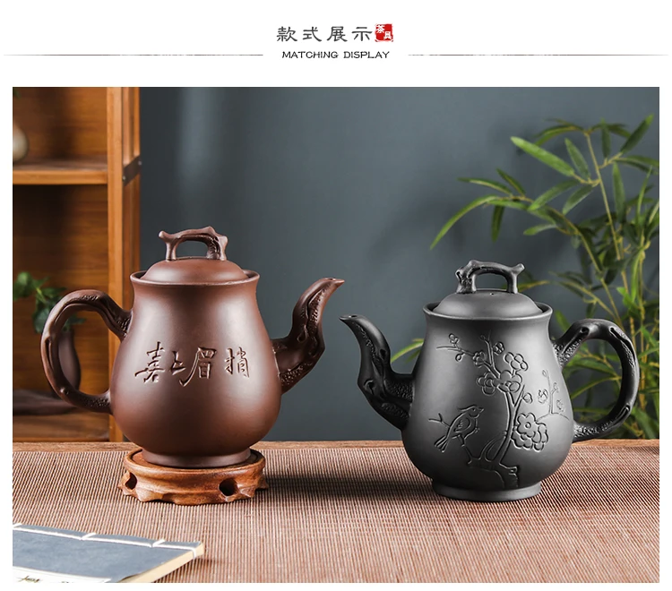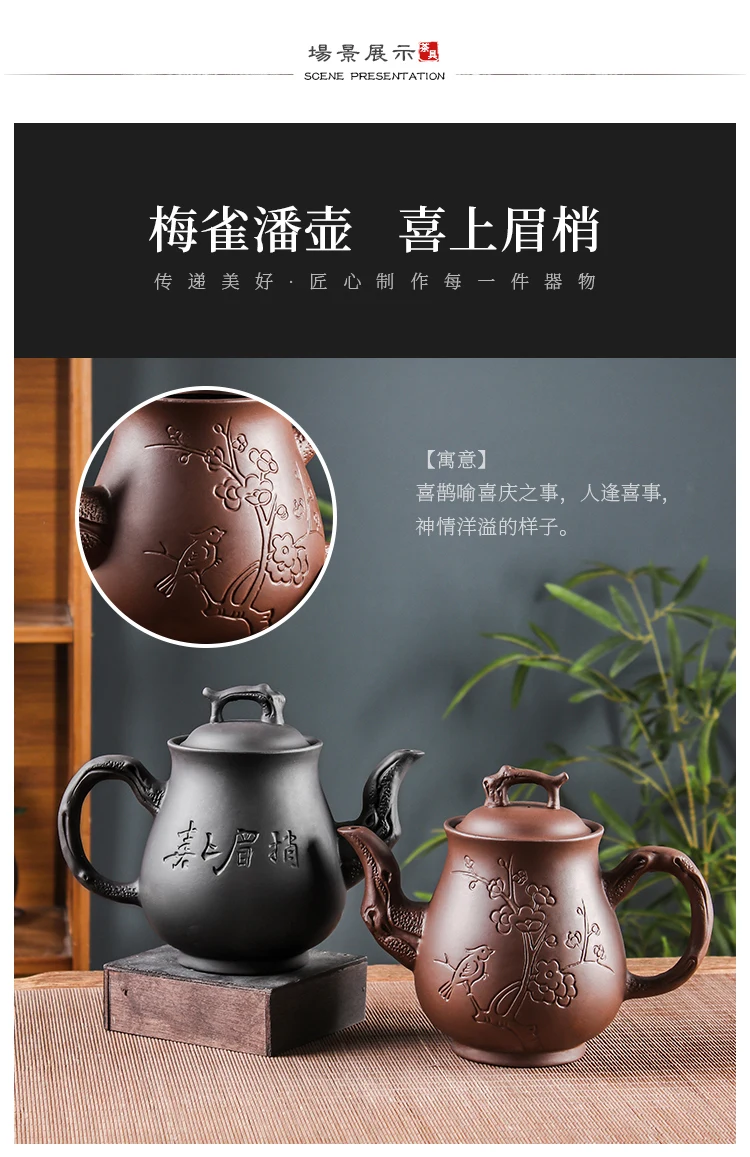 Yixing-Purple Clay Pot, Large Capacity, Plum Finch Pot, Household Cinnabar Teapot, Ceramic Kettle, Tea Cup, Kungfu Tea Set