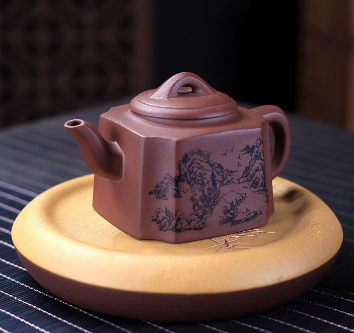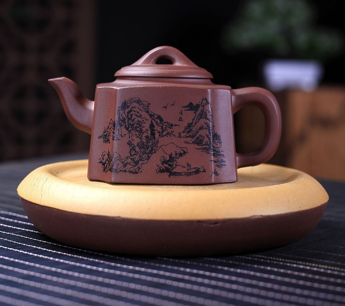 Yixing purple clay pot raw ore Purple mud manual Kung Fu tea set picturesque, co