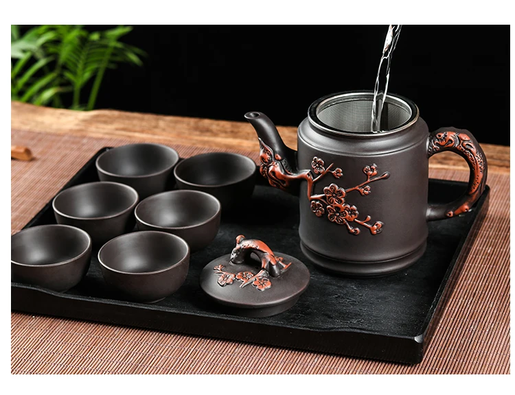 Yixing Zisha Pot Stainless Steel Strainer Teapot Large Capacity Flower Tea Single Pot Tea Cup Kettle Set Home 500ml Tea Maker