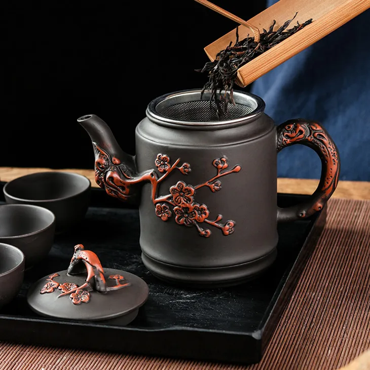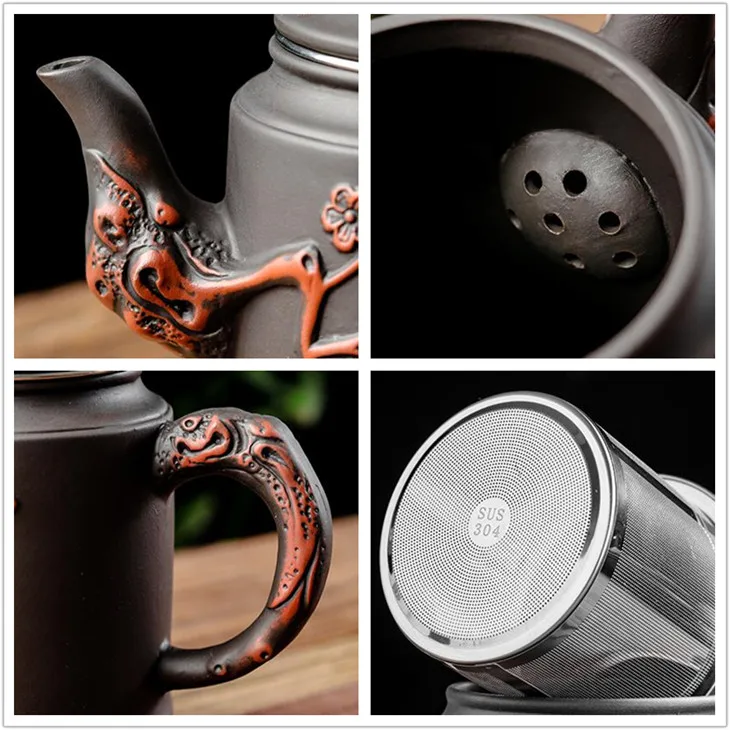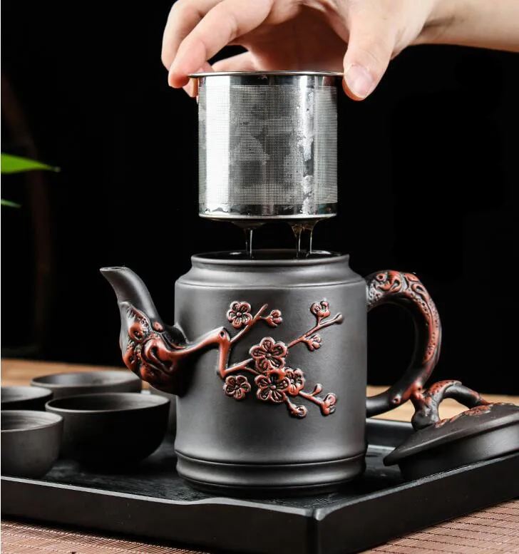Yixing-Zisha Pot Stainless Steel Strainer Teapot, Large Capacity, Flower Tea, Single Pot, Tea Cup, Kettle Set, Home, 550ml