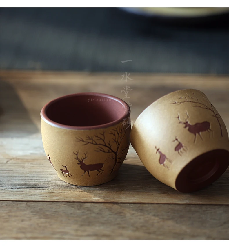 Yixing Zisha teapot Zisha tea cup Master Cup single cup clear water mud slurry jar shaped plum deer cup collection