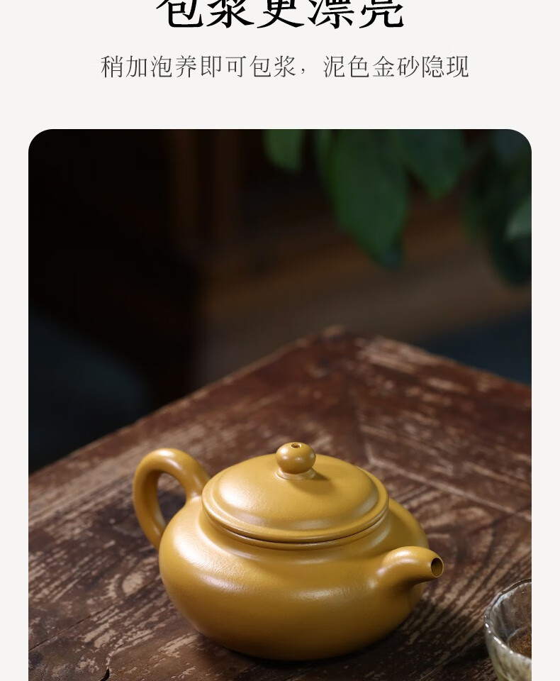 Zanghutianxia Yixing Purple Clay Pot Handmade Kung Fu Teaware Single Pot Raw Ore Golden Yellow Segment Mud Small Capacity Househ