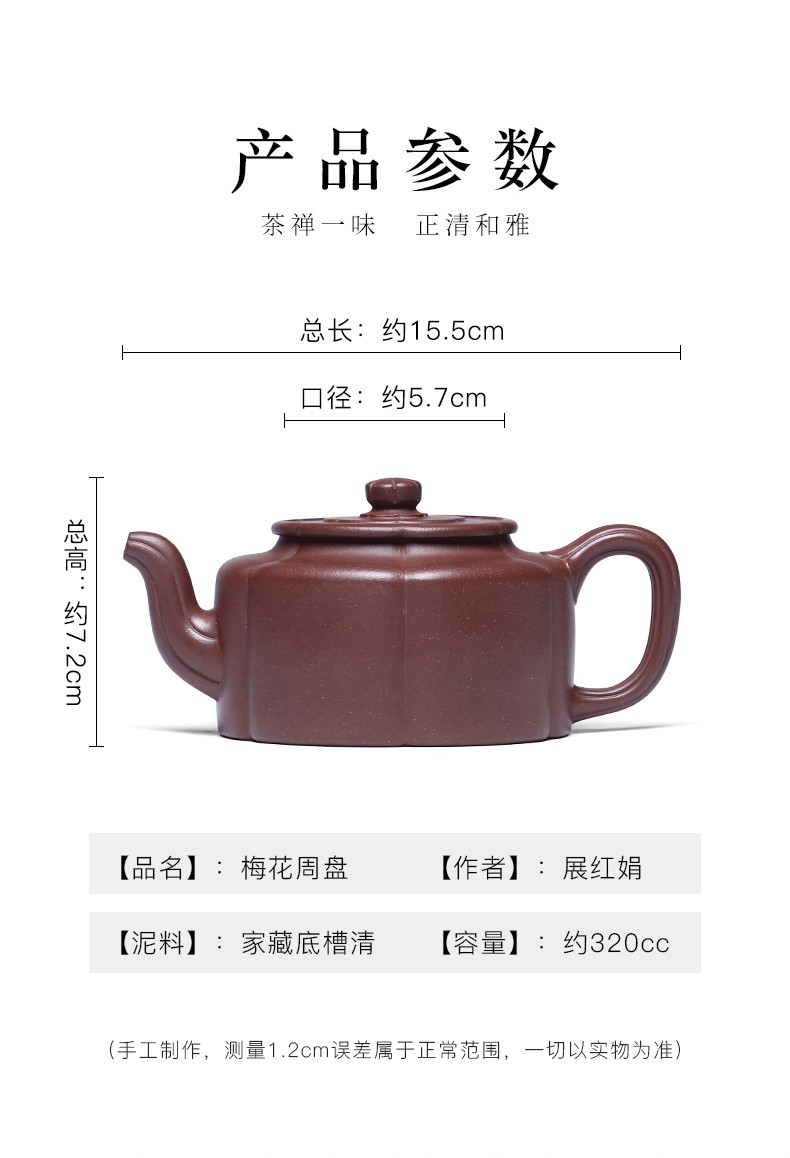 Zanghutianxia Yixing Zisha Teapot Handmade High-Grade Zisha Tea Set Raw Ore Home Collection Bottom Trough Clear Teapot Plum Blos
